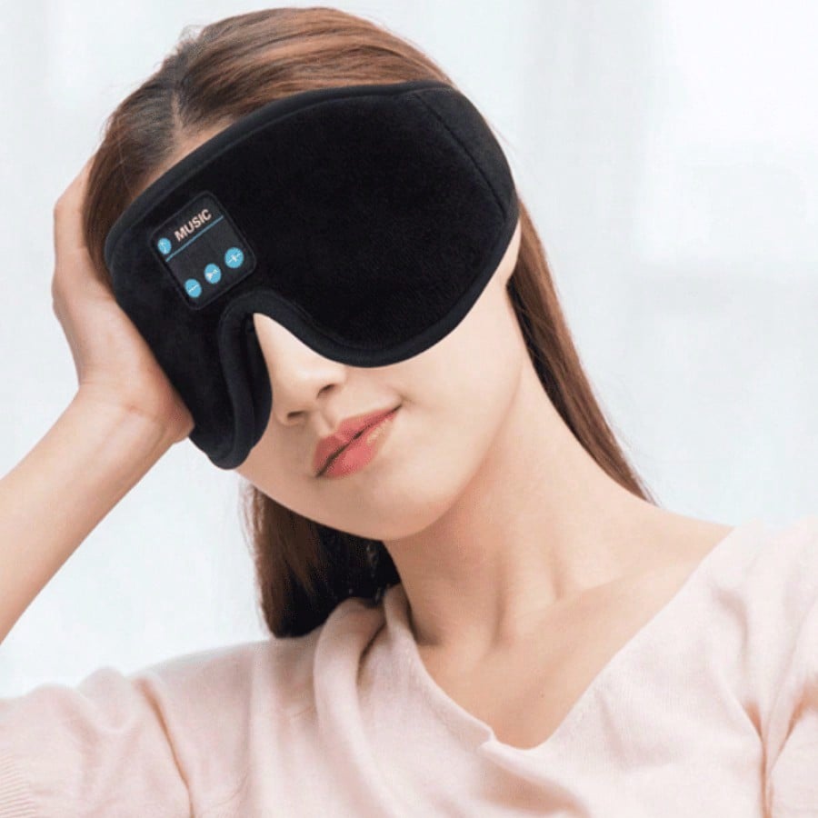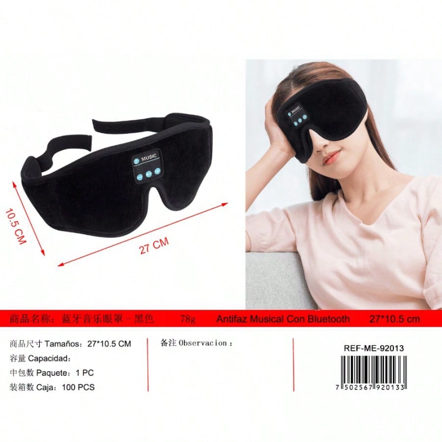 Antifaz negro con tecnología Bluetooth integrada. Combina descanso ocular con entretenimiento musical, ideal para relajación y meditación. Conexión inalámbrica para mayor comodidad.