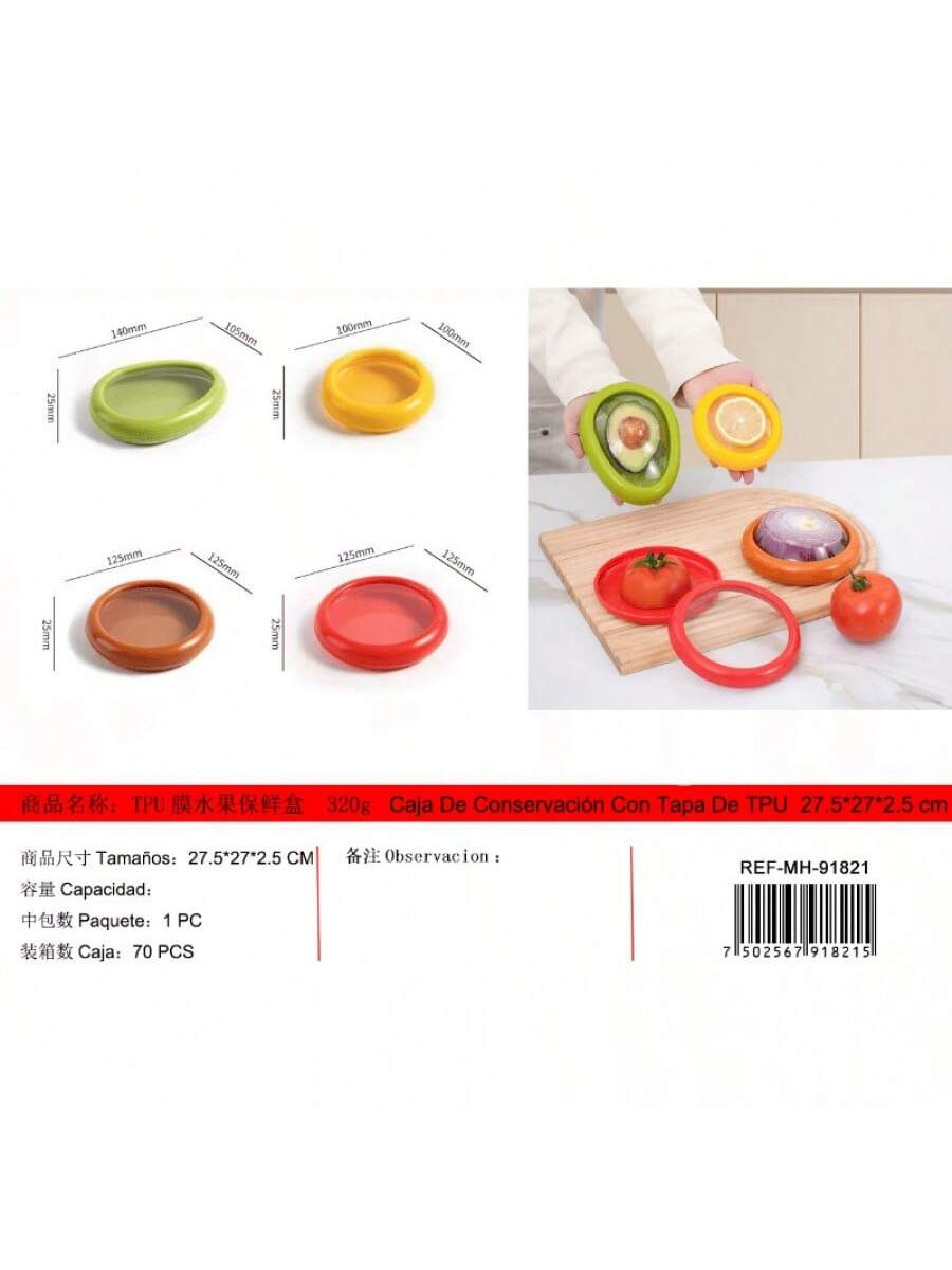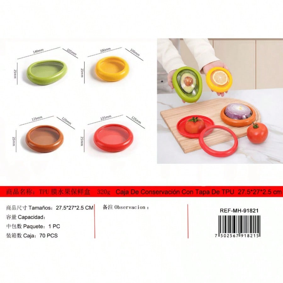 Caja almacenamiento frutas con película TPU. Conserva frescura y evita magulladuras. Diseño práctico para refrigeración y transporte.