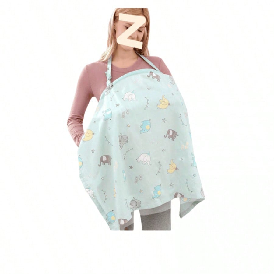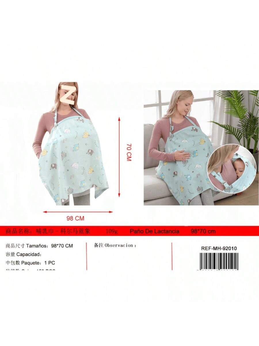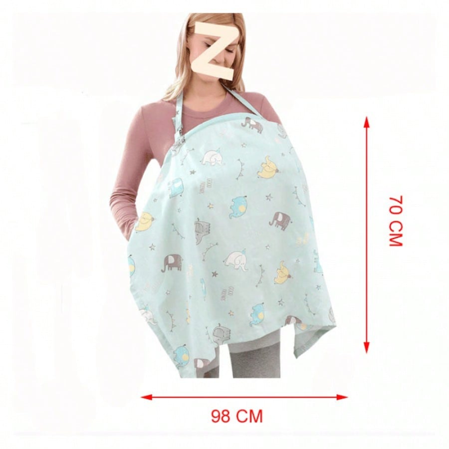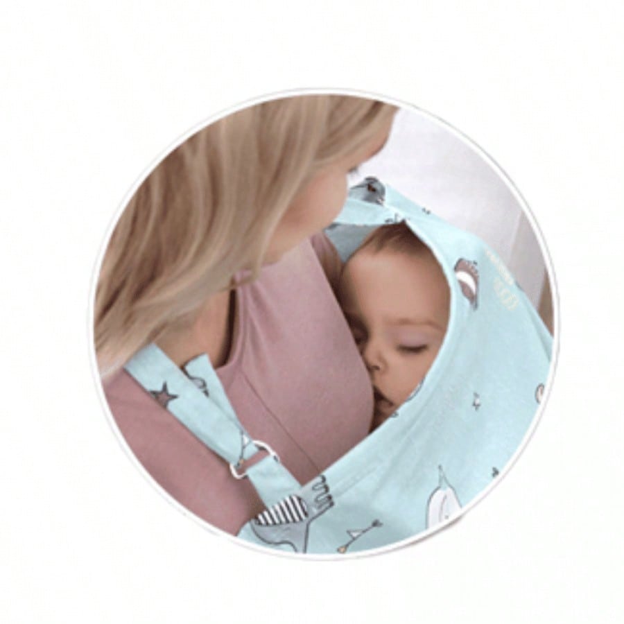 Funda de lactancia color Korma con estampado de elefante azul. Proporciona discreción y comodidad durante la alimentación del bebé. Tela suave y diseño práctico para uso interior y exterior.