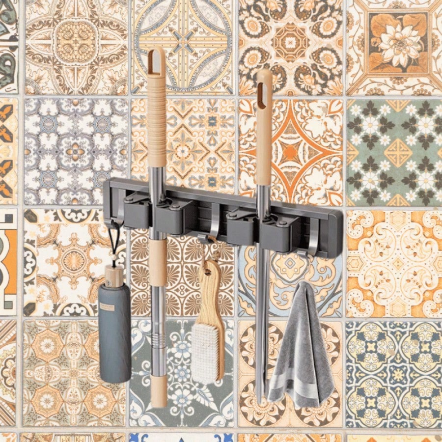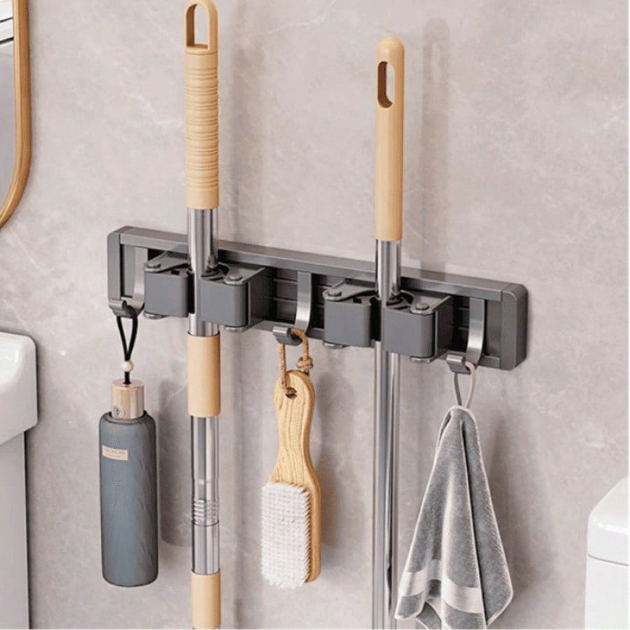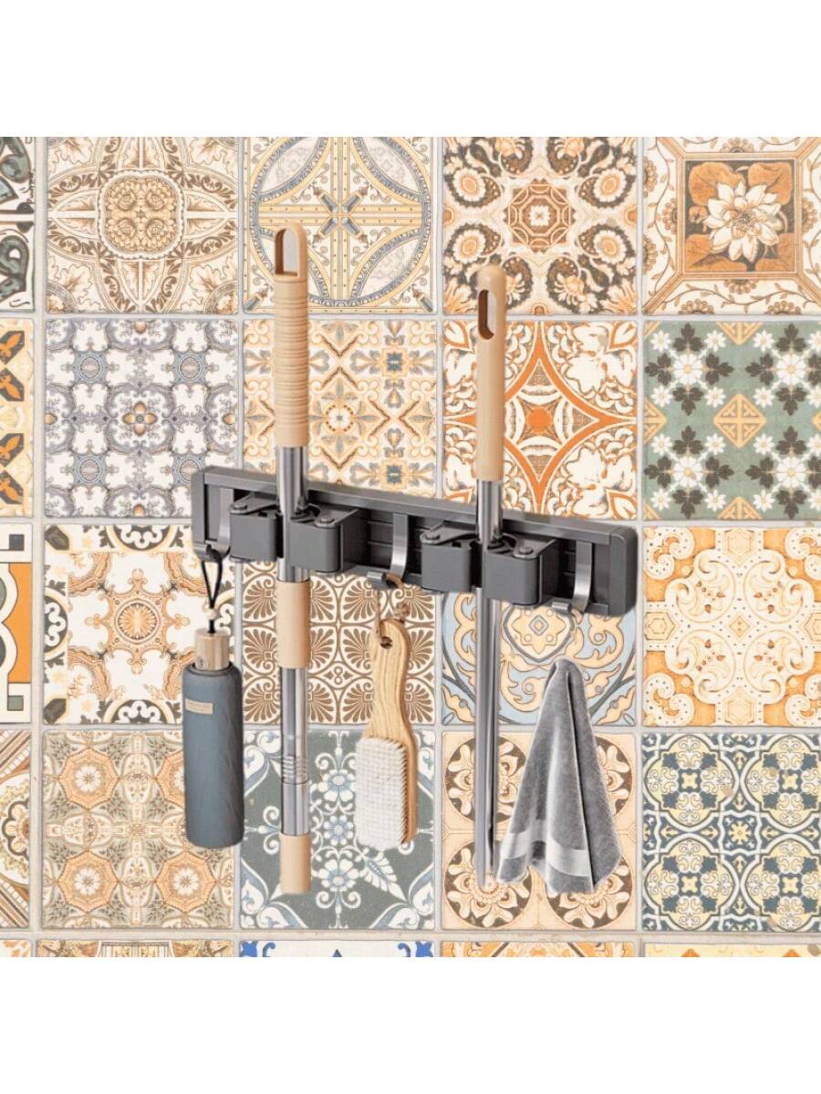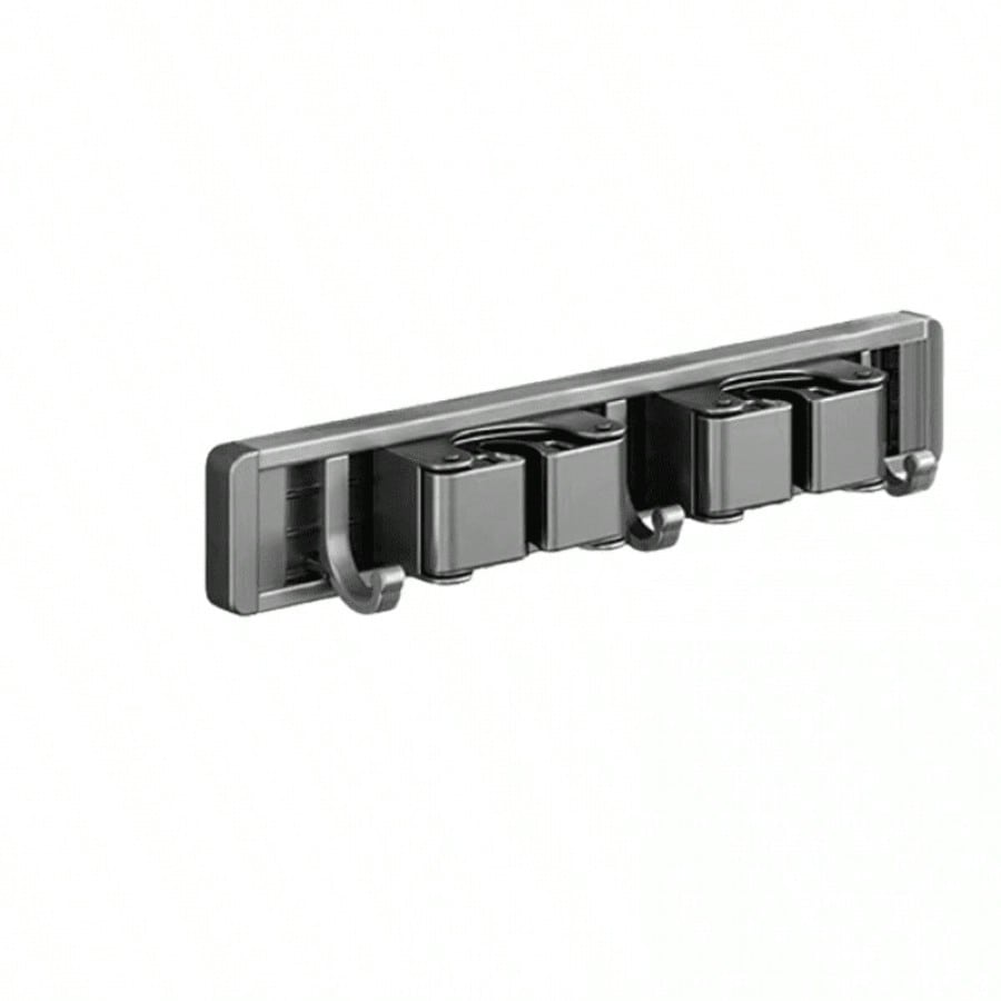 Gancho de pared en color gris pistola que incluye 2 tarjetas y 3 ganchos. Versátil solución de organización para colgar llaves, toallas o pequeños objetos. Diseño moderno que se integra fácilmente en diferentes espacios del hogar.