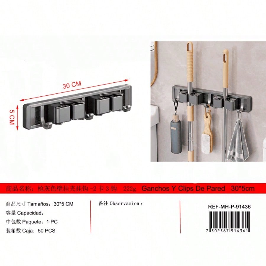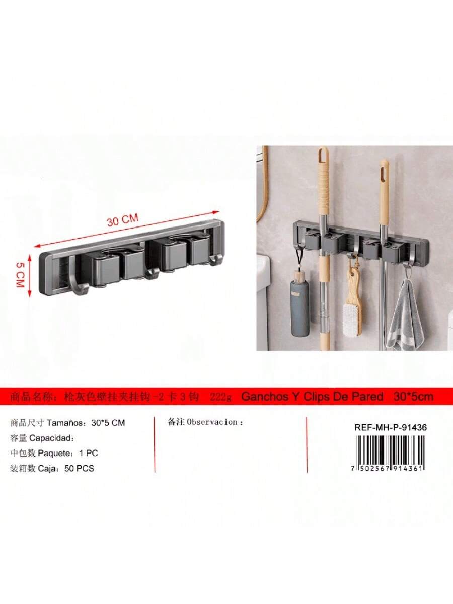 Gancho de pared con clip, color gris pistola - 2 tarjetas, 3 ganchos