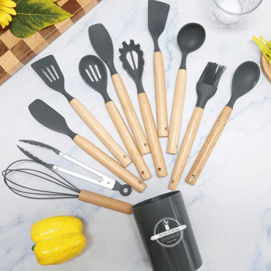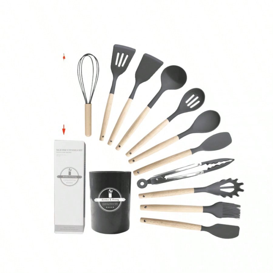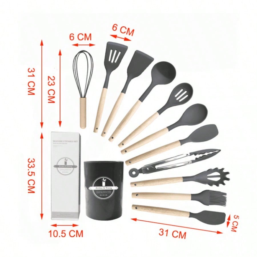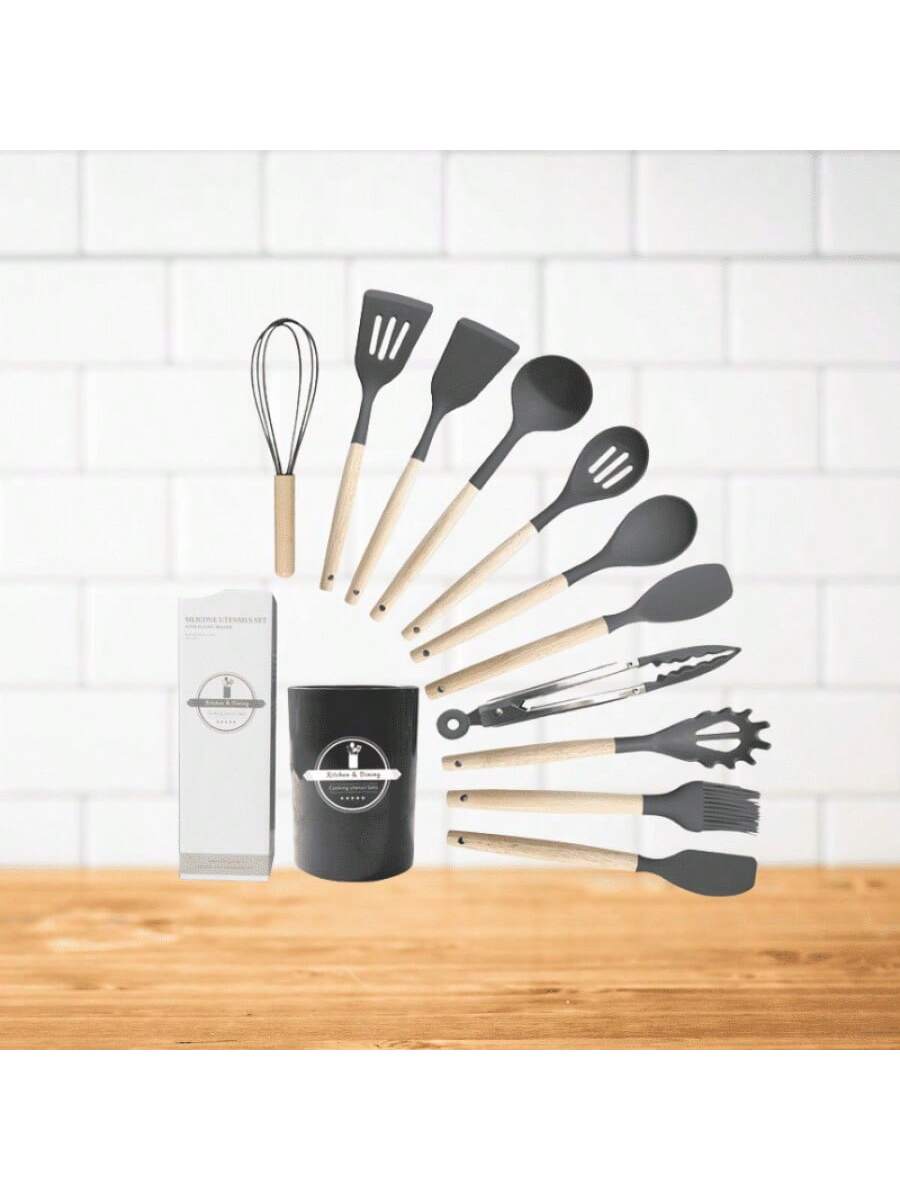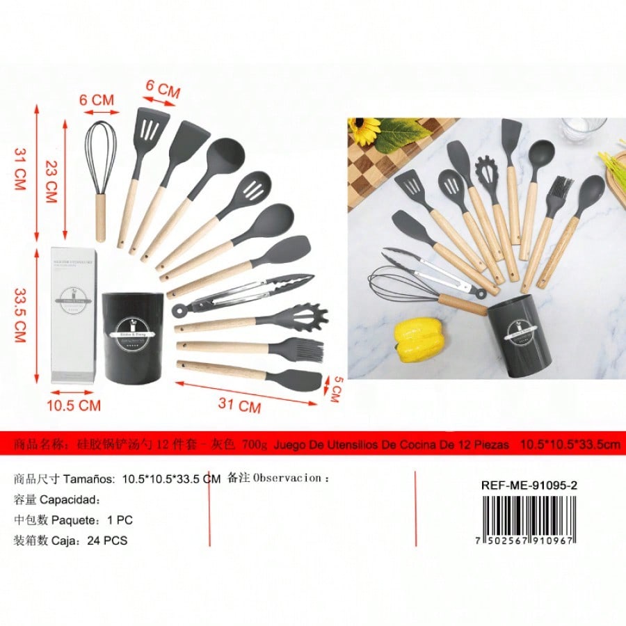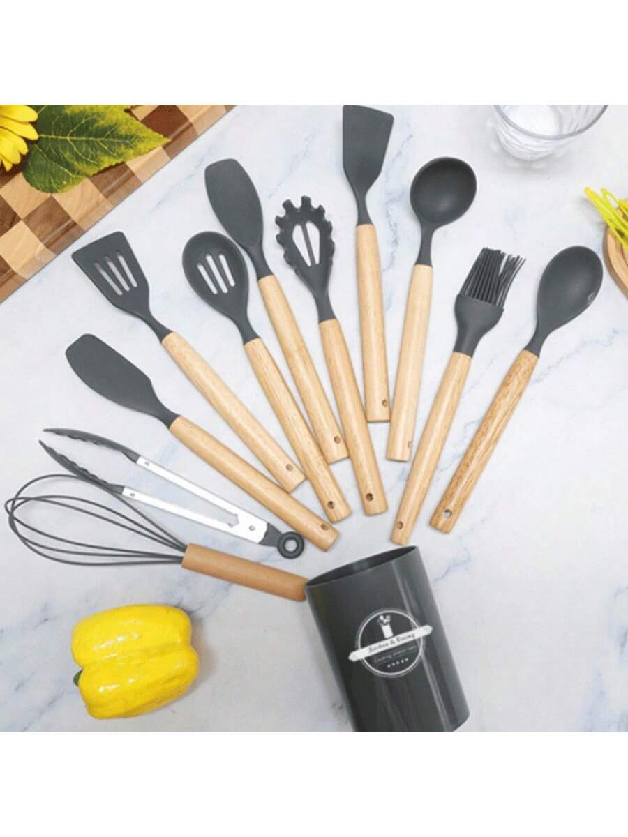 Juego de espátulas y cucharones de silicona (12 piezas) - Color caqui (700 g)