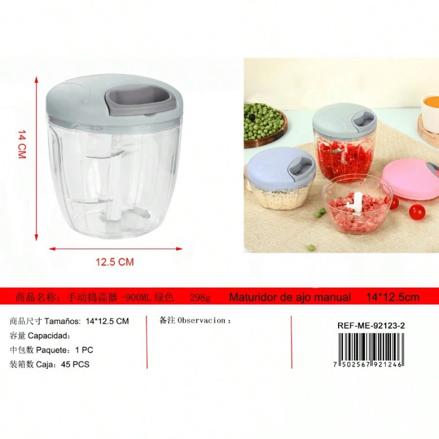 Prensa de ajos verde 900 ml. Simplifica proceso de picar ajo para recetas, mecanismo eficiente que ahorra tiempo en cocina, construcción robusta para uso frecuente.