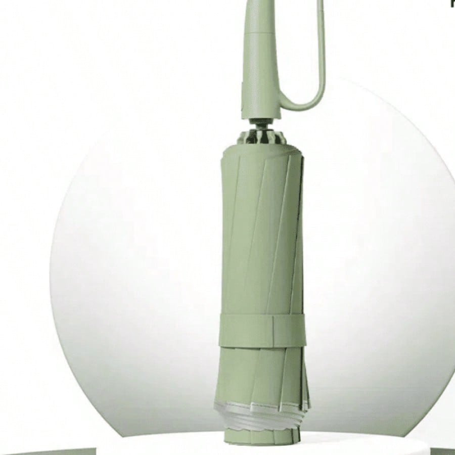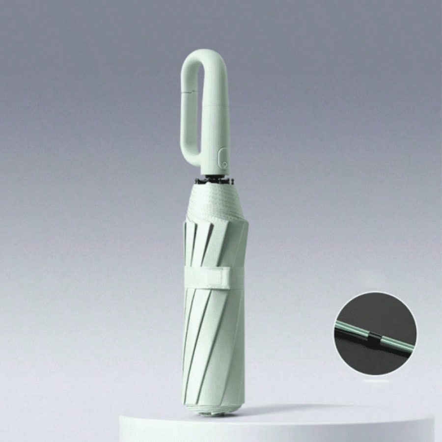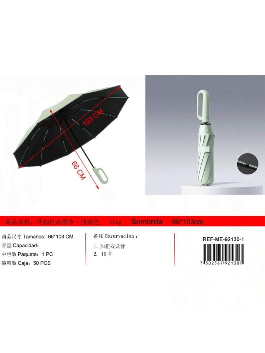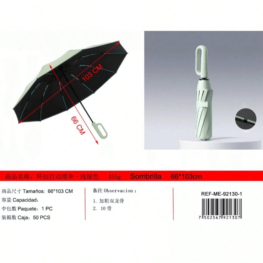 Paraguas automático verde claro con armazón entrelazado y 10 varillas dobles reforzadas. Apertura automática para mayor comodidad, estructura resistente a vientos fuertes, protección confiable.