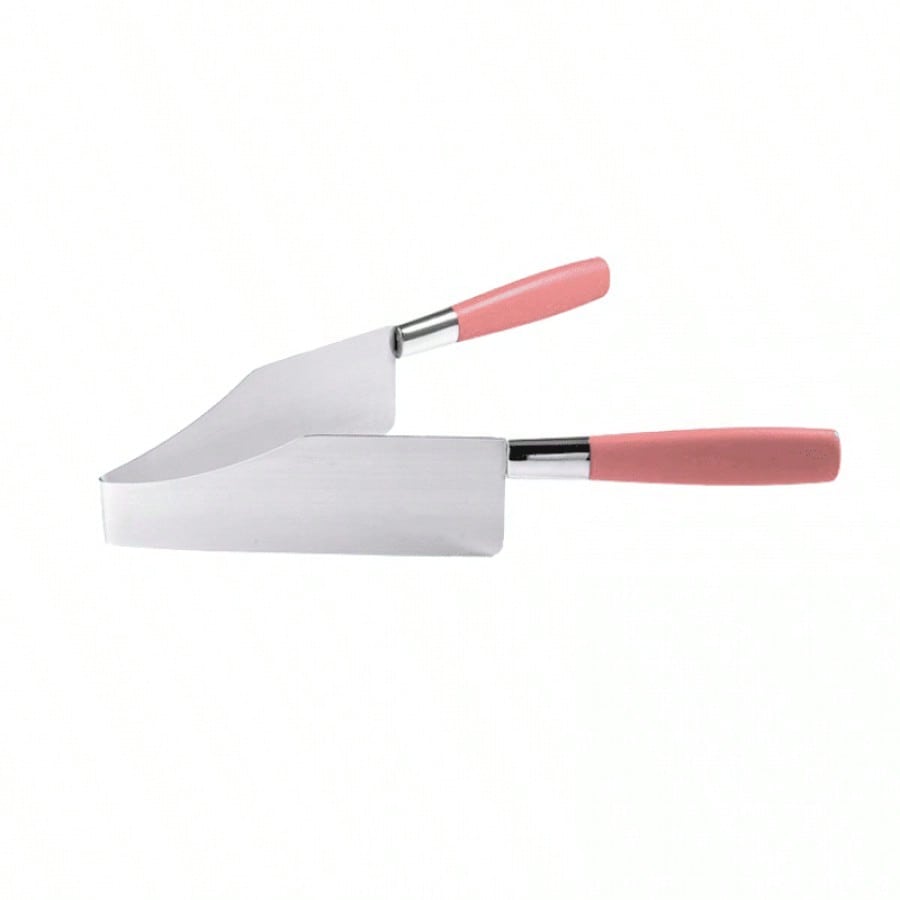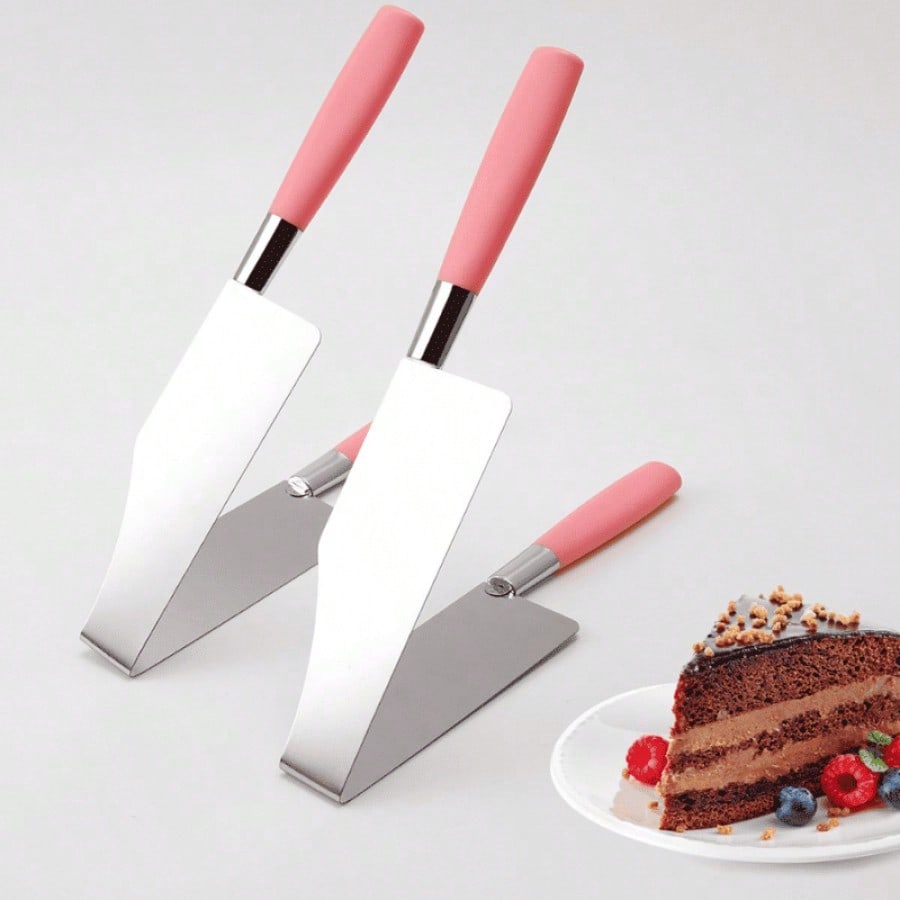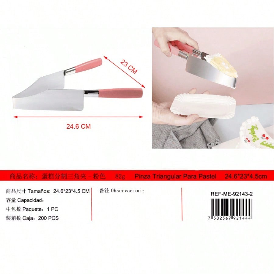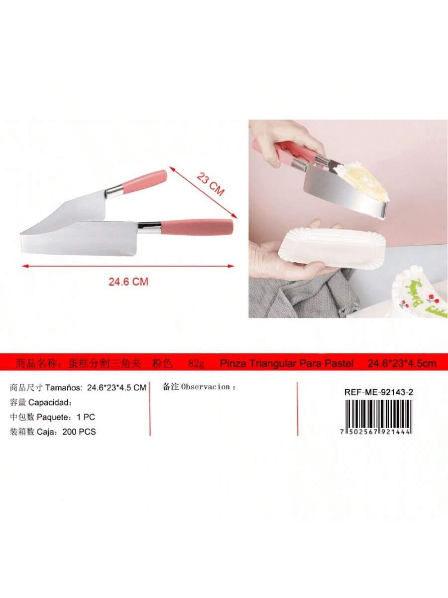 Pinzas triangulares rosa para separar pasteles. Utensilio práctico para decoración y servicio de postres, forma ergonómica que facilita manipulación de tortas y pasteles.