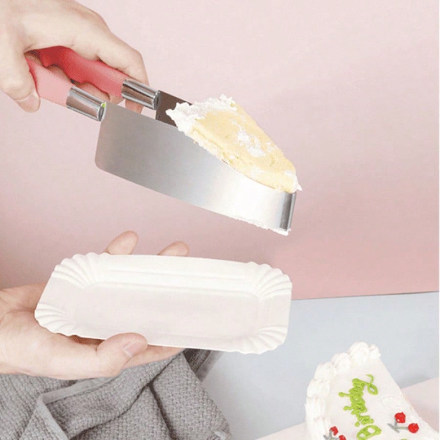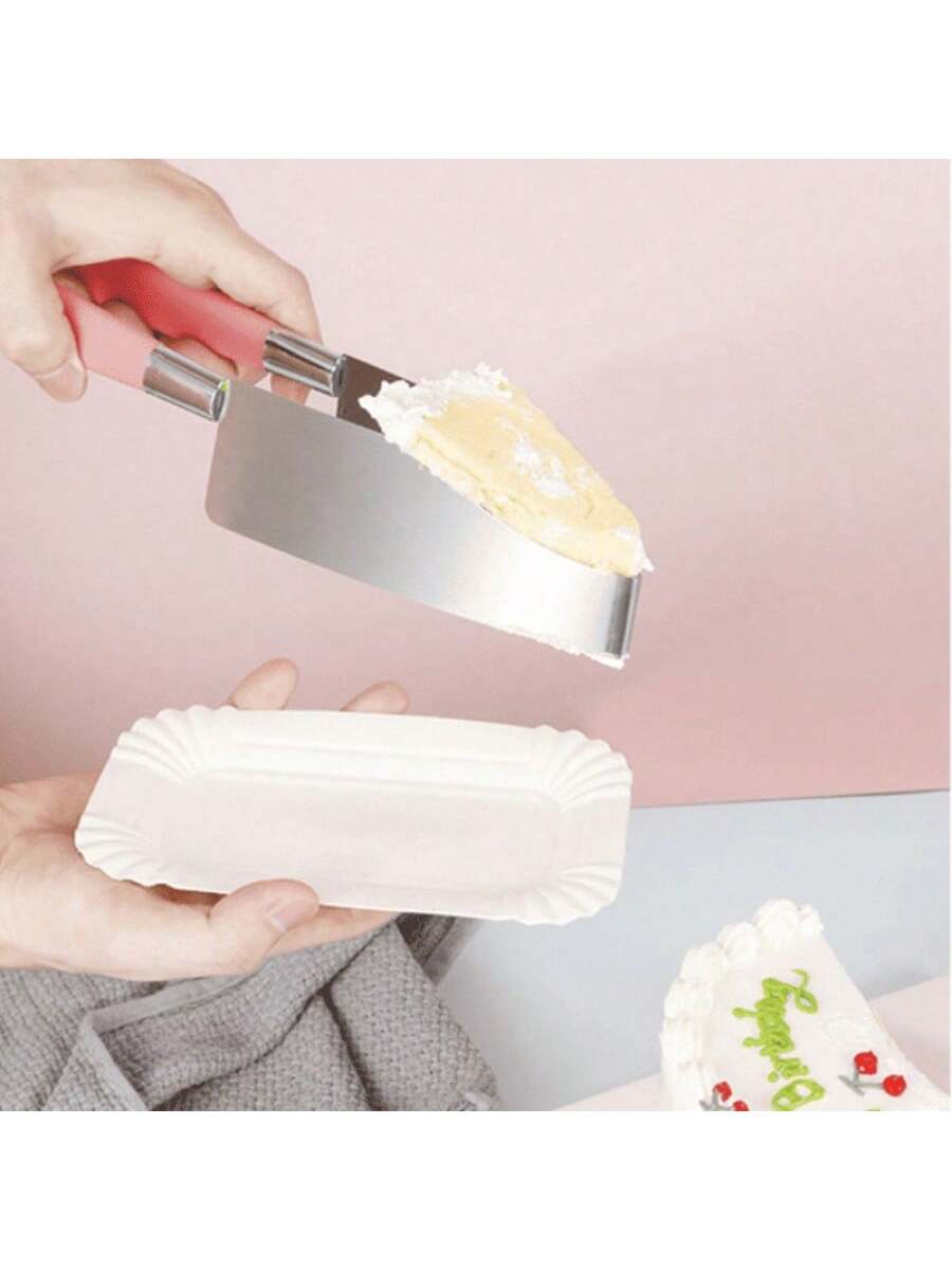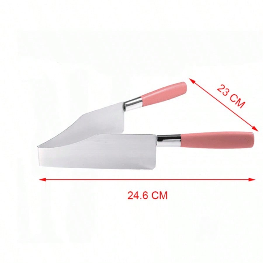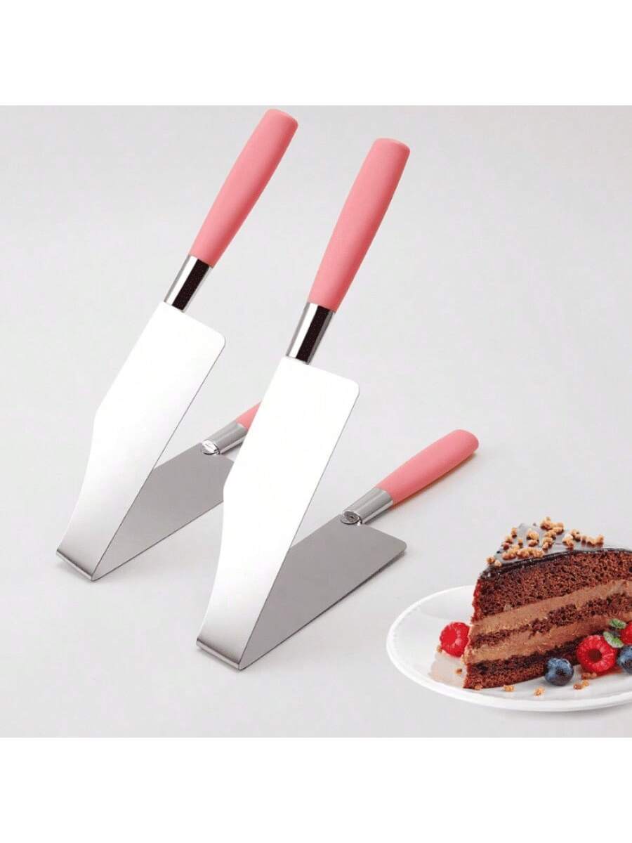 Pinzas triangulares rosa para separar pasteles. Utensilio práctico para decoración y servicio de postres, forma ergonómica que facilita manipulación de tortas y pasteles.