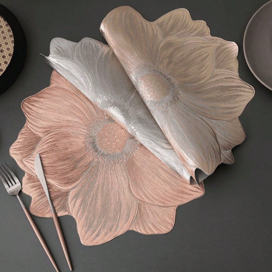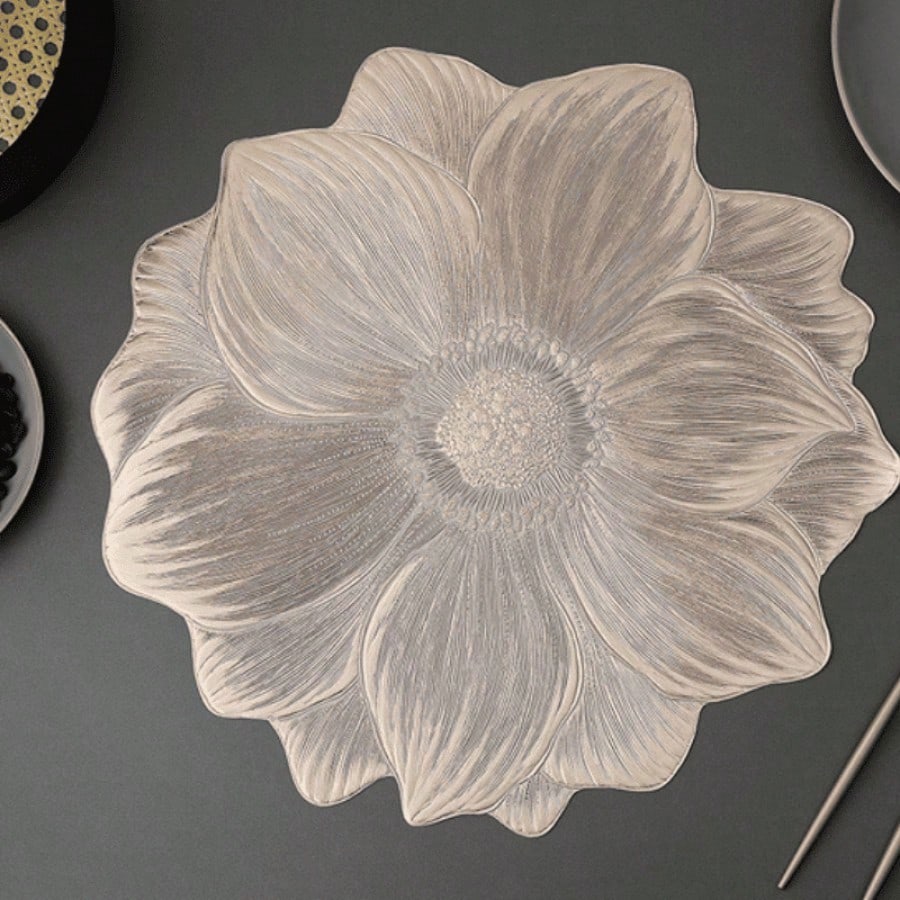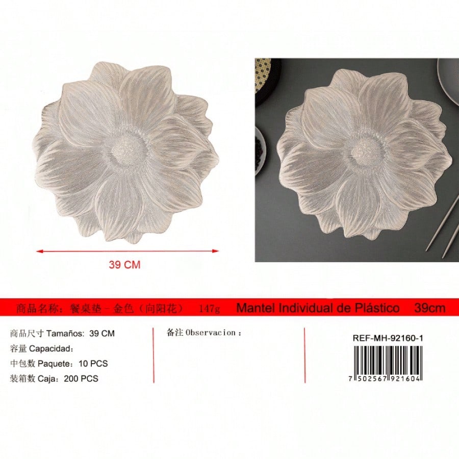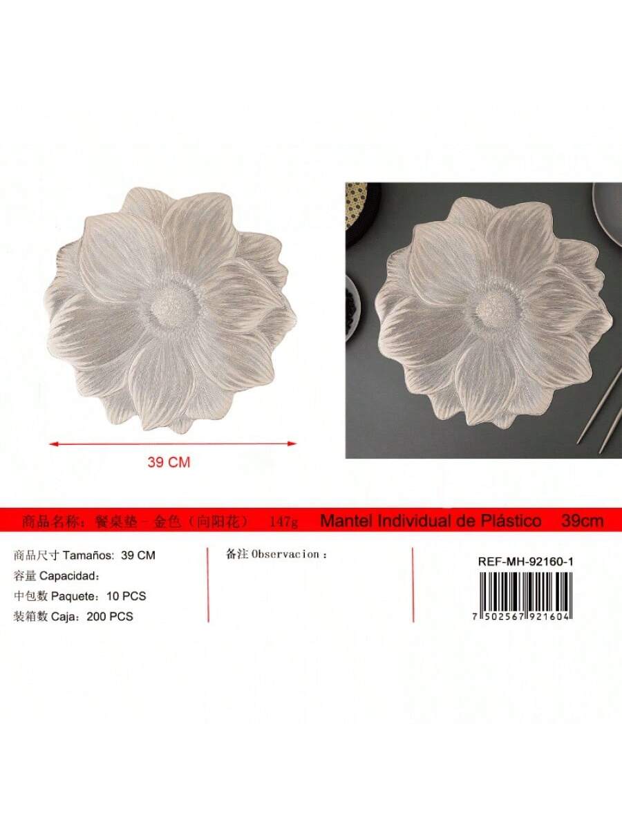 Mantel individual dorado con motivo de girasol. Elemento decorativo para mesa que protege superficies, diseño alegre que realza presentación de platos, fácil de limpiar y guardar.