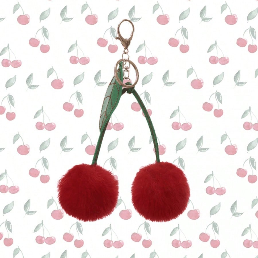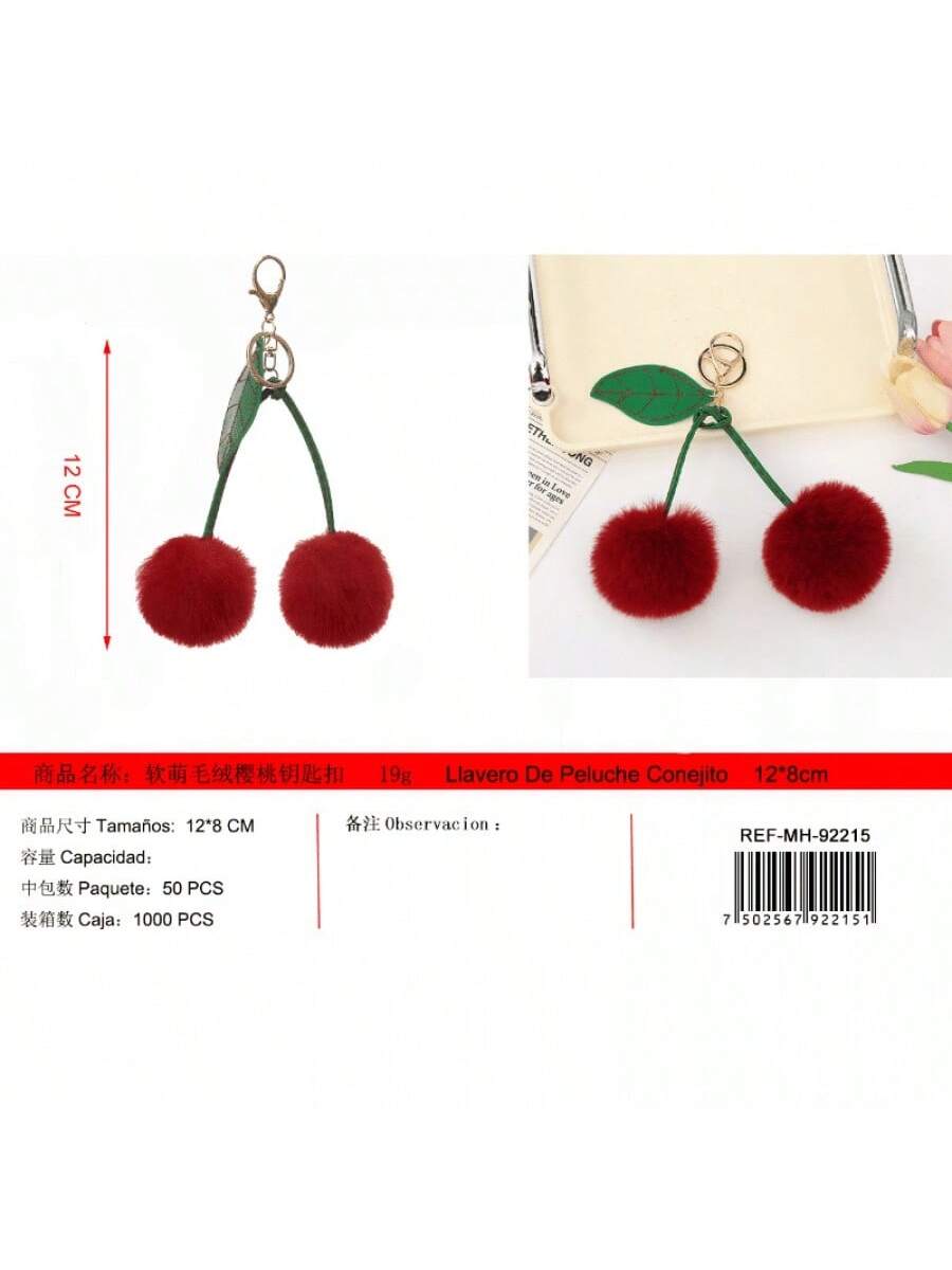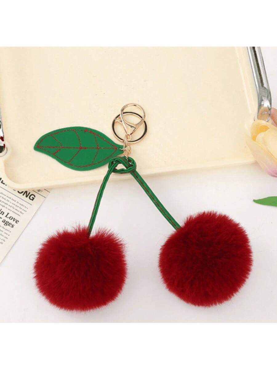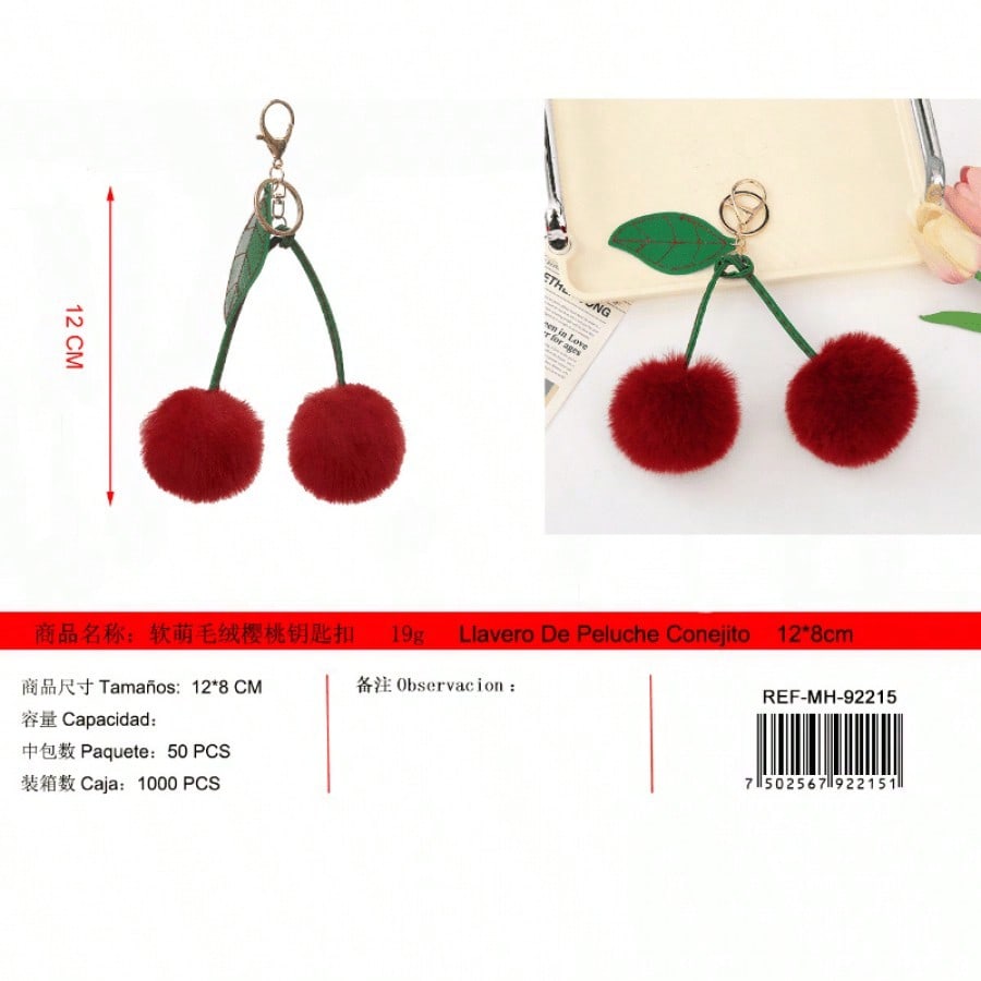 Llavero de cereza en peluche suave y bonito. Diseño adorable y táctil para identificar llaves fácilmente, material de calidad que resiste uso diario, ideal para regalo o uso personal.