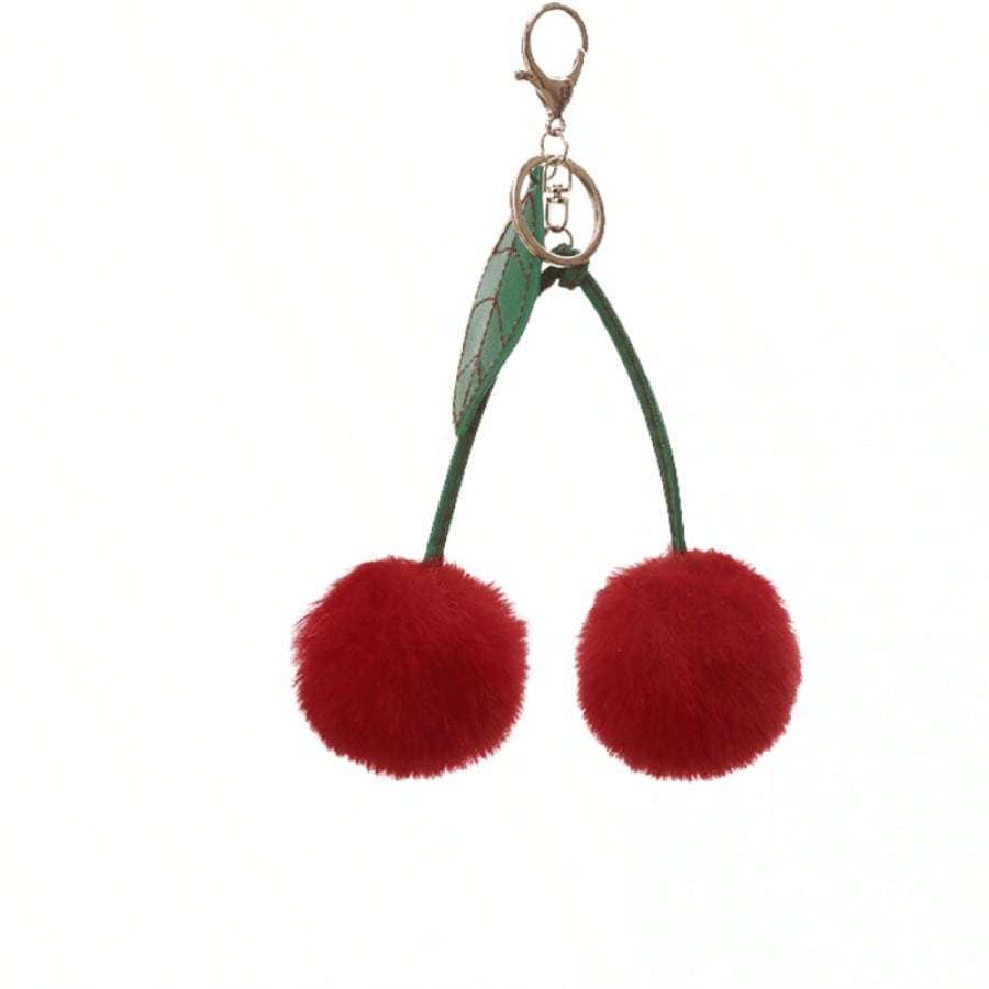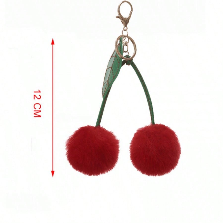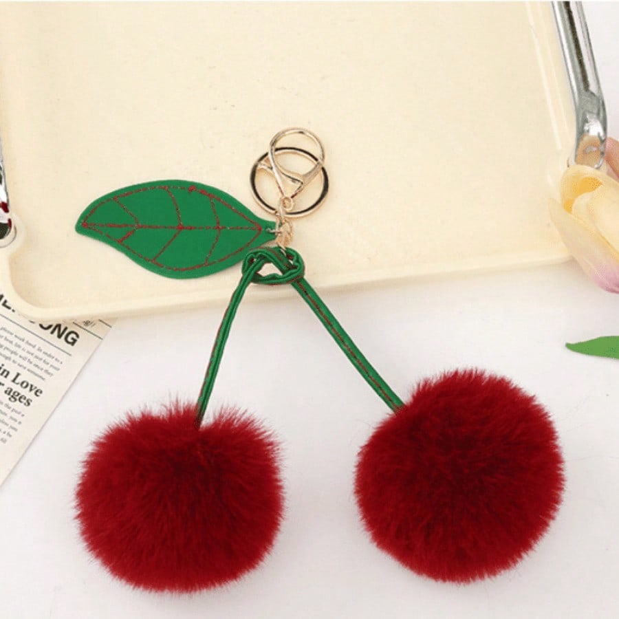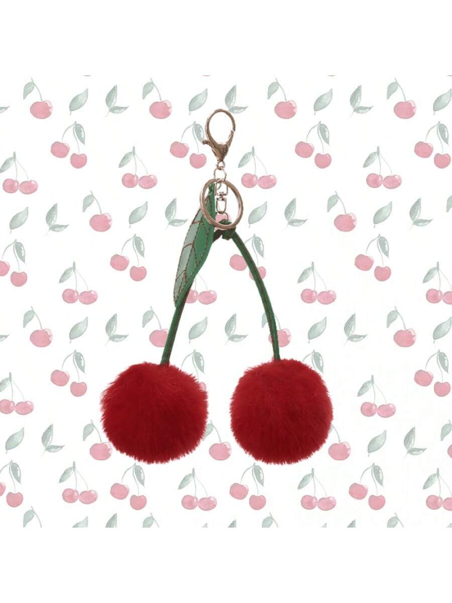 Llavero de cereza en peluche suave y bonito. Diseño adorable y táctil para identificar llaves fácilmente, material de calidad que resiste uso diario, ideal para regalo o uso personal.