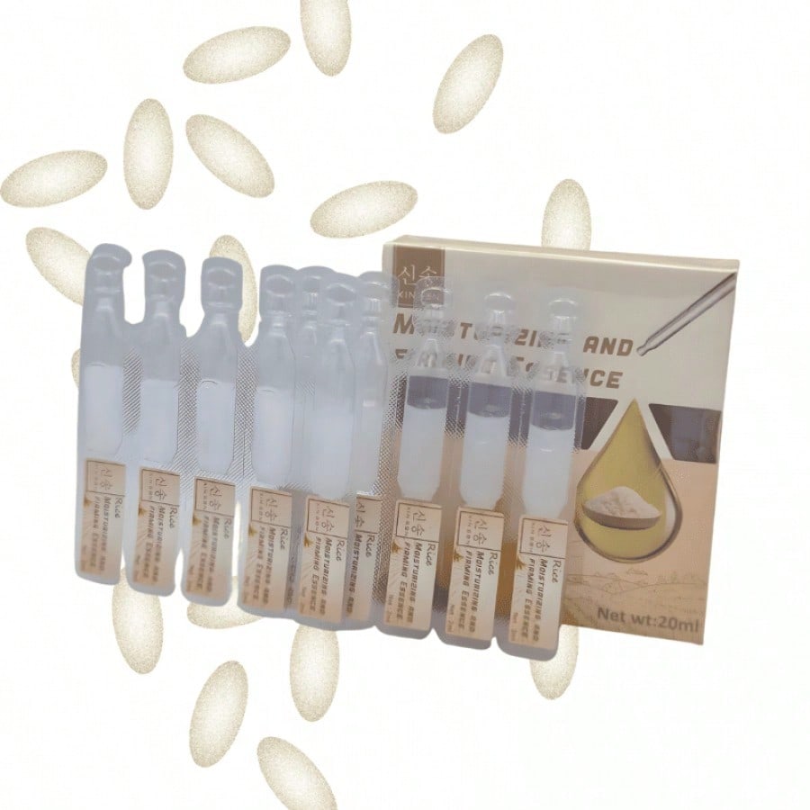 Serum de arroz en presentación de 10 ampollas de 2ml. Extracto de arroz que ayuda a uniformar el tono de la piel y aportar luminosidad natural. Tratamiento intensivo para un cutis más homogéneo y radiante.