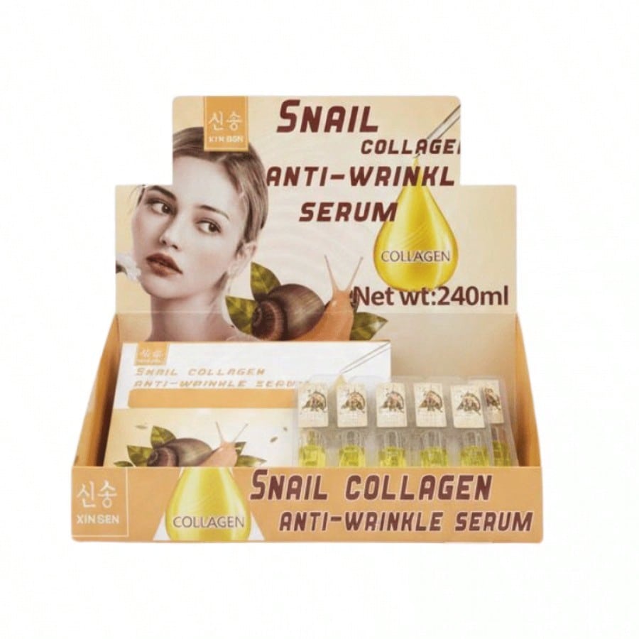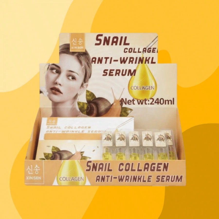 Serum de baba de caracol en presentación de 10 ampollas de 2ml. Formulación regeneradora que ayuda a mejorar la apariencia de la textura cutánea, aportando suavidad y ayudando en la renovación celular.
