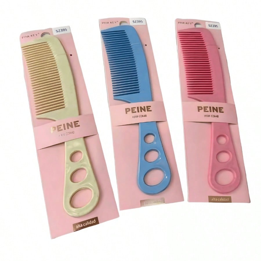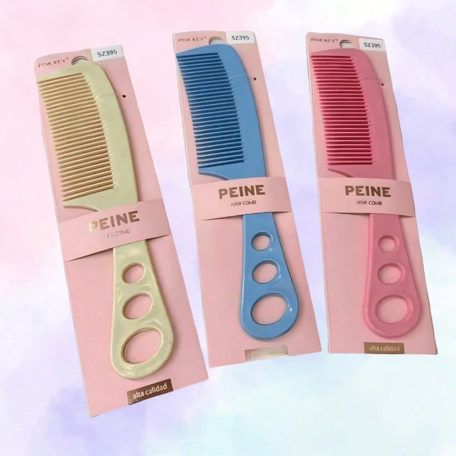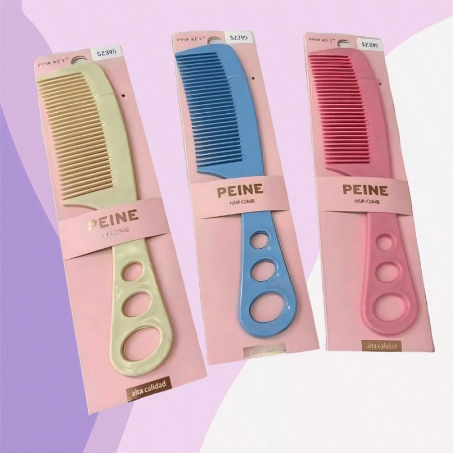 Peine de diferentes tipos según necesidad. Disponible en variantes para cabello seco, mojado o para crear peinados específicos, herramienta esencial en cualquier rutina de cuidado capilar.
