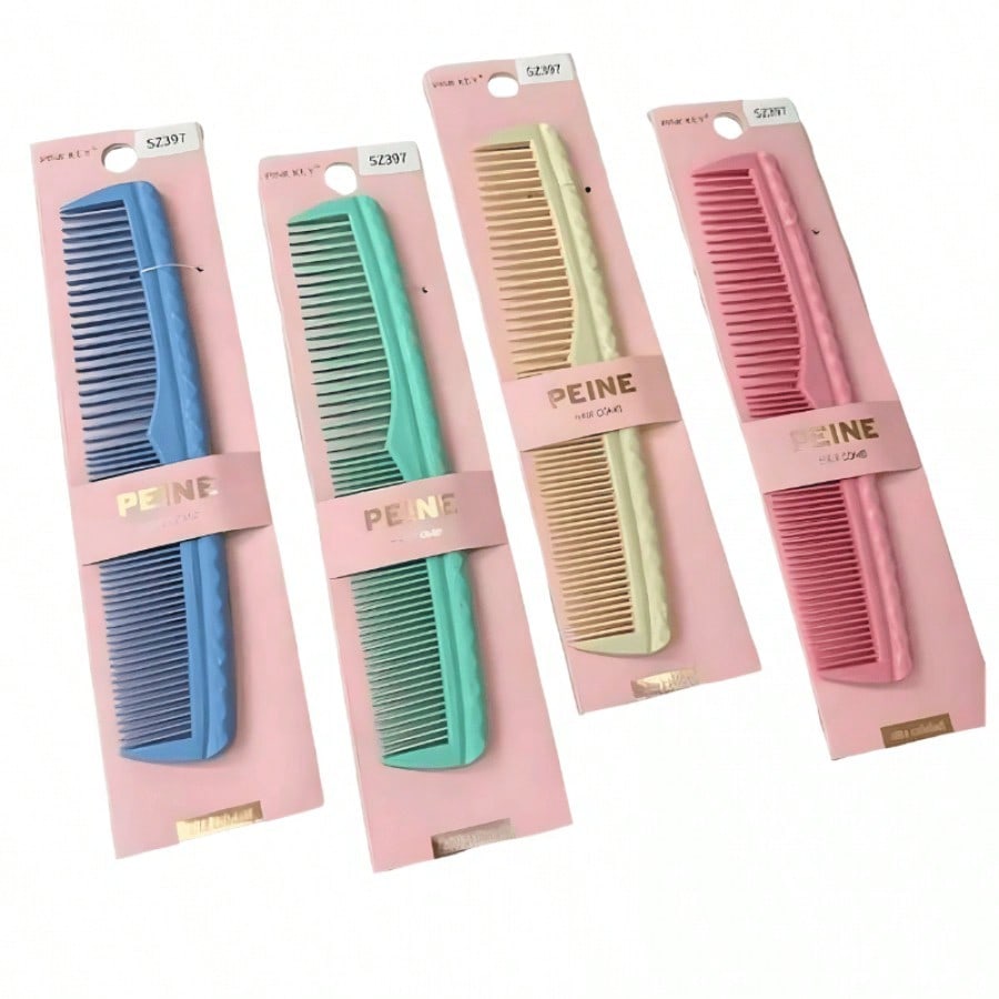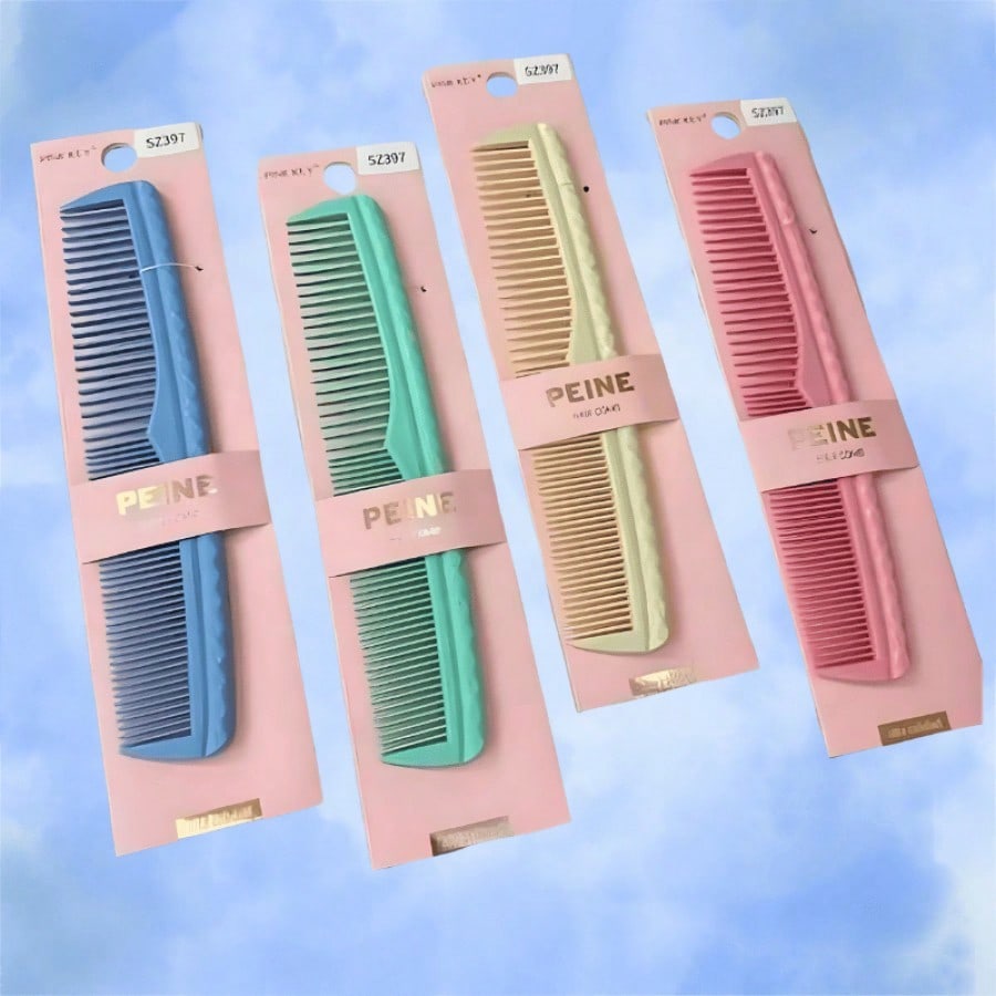 Peine básico para cuidado capilar diario. Diseño funcional que ayuda a desenredar el cabello suavemente, distribuyendo los productos de tratamiento de manera uniforme por todo el cabello.