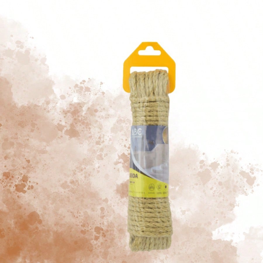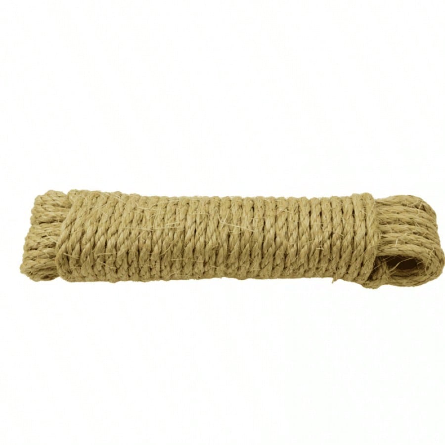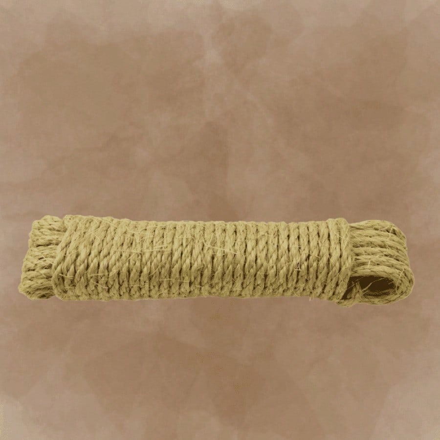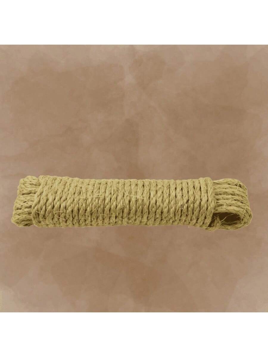 Cuerda de cáñamo de tres hebras de 6mm x 10m. Resistente y versátil para jardinería, decoración o uso general, con la durabilidad característica de las fibras naturales tradicionales.