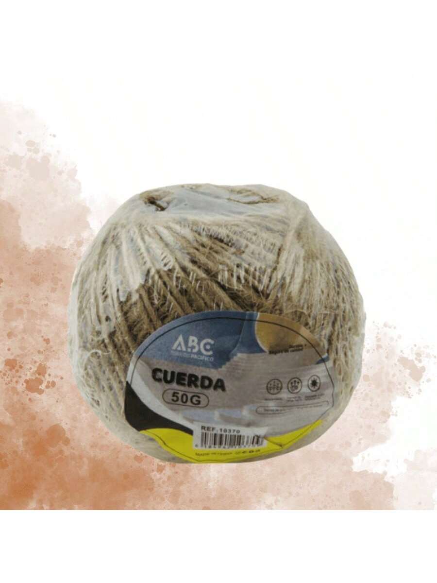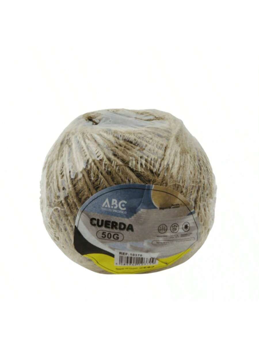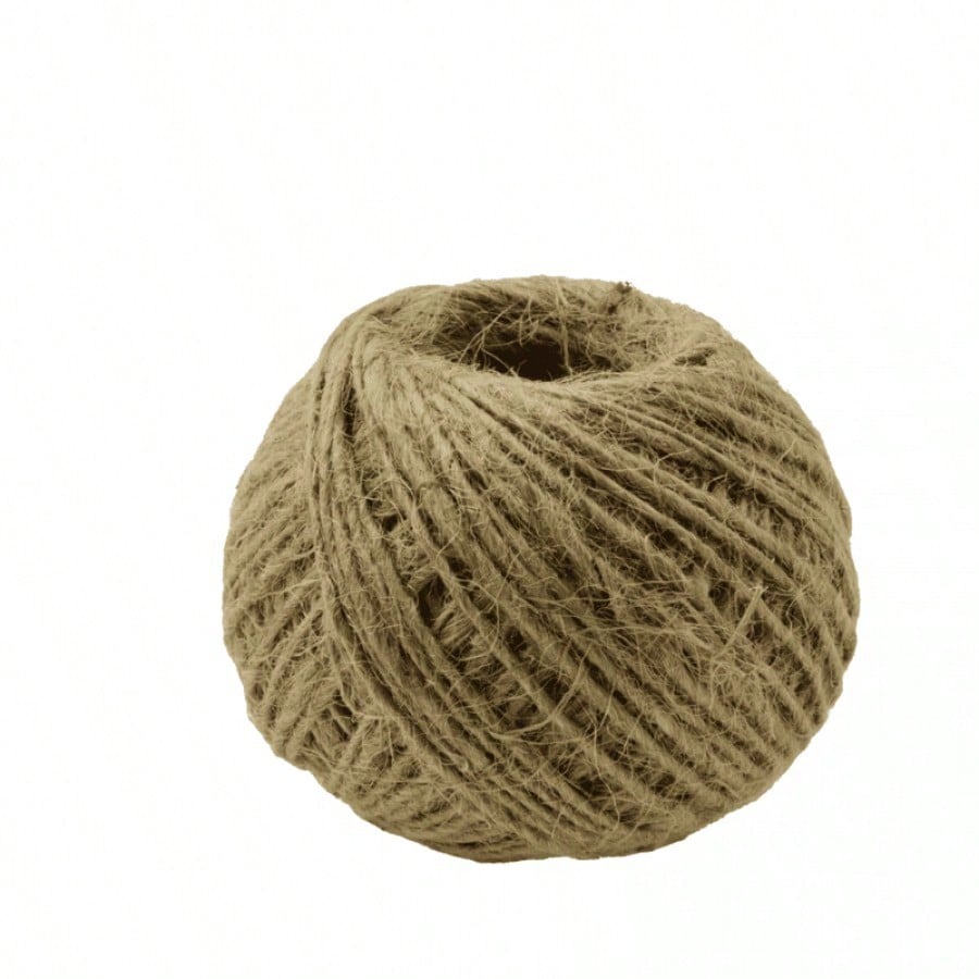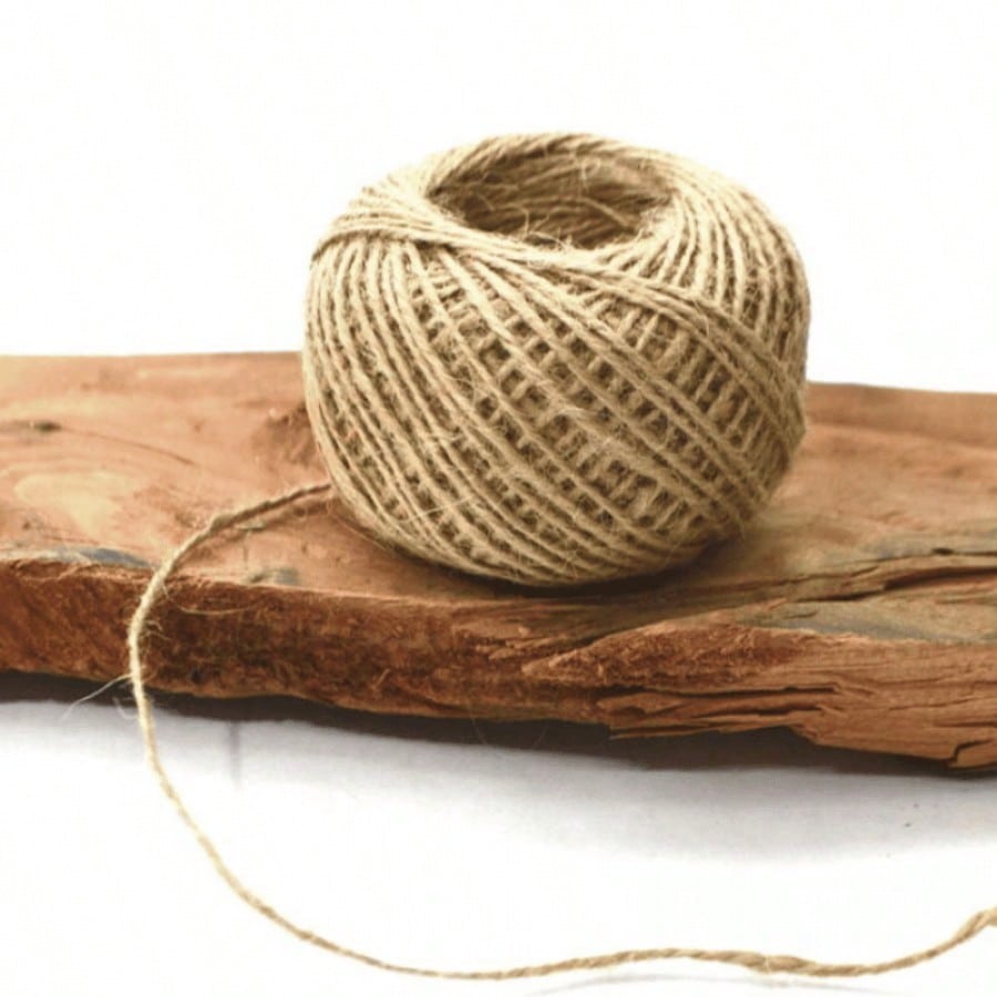 Ovillo de hilo de yute natural de 50 gramos. Material ecológico perfecto para manualidades, decoración y proyectos DIY, ofreciendo resistencia y aspecto rústico característico.