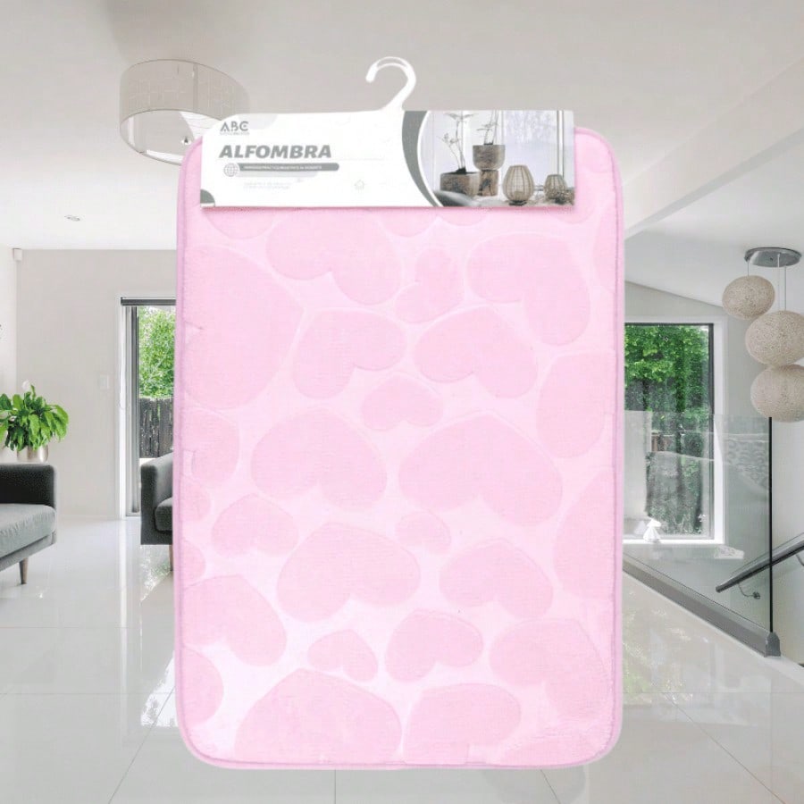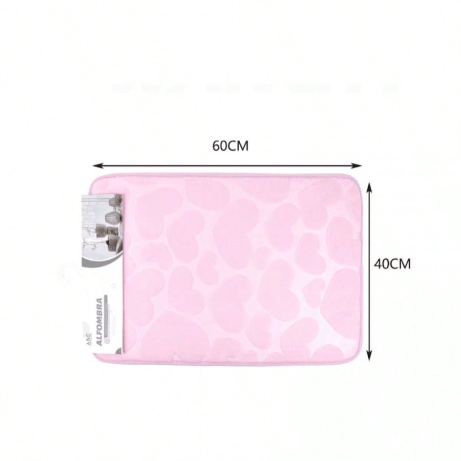 Alfombra de franela de 40x60 cm con patrón en relieve. Material suave y absorbente, ideal para baño o cocina donde se requiere secado rápido y comodidad bajo los pies diariamente.
