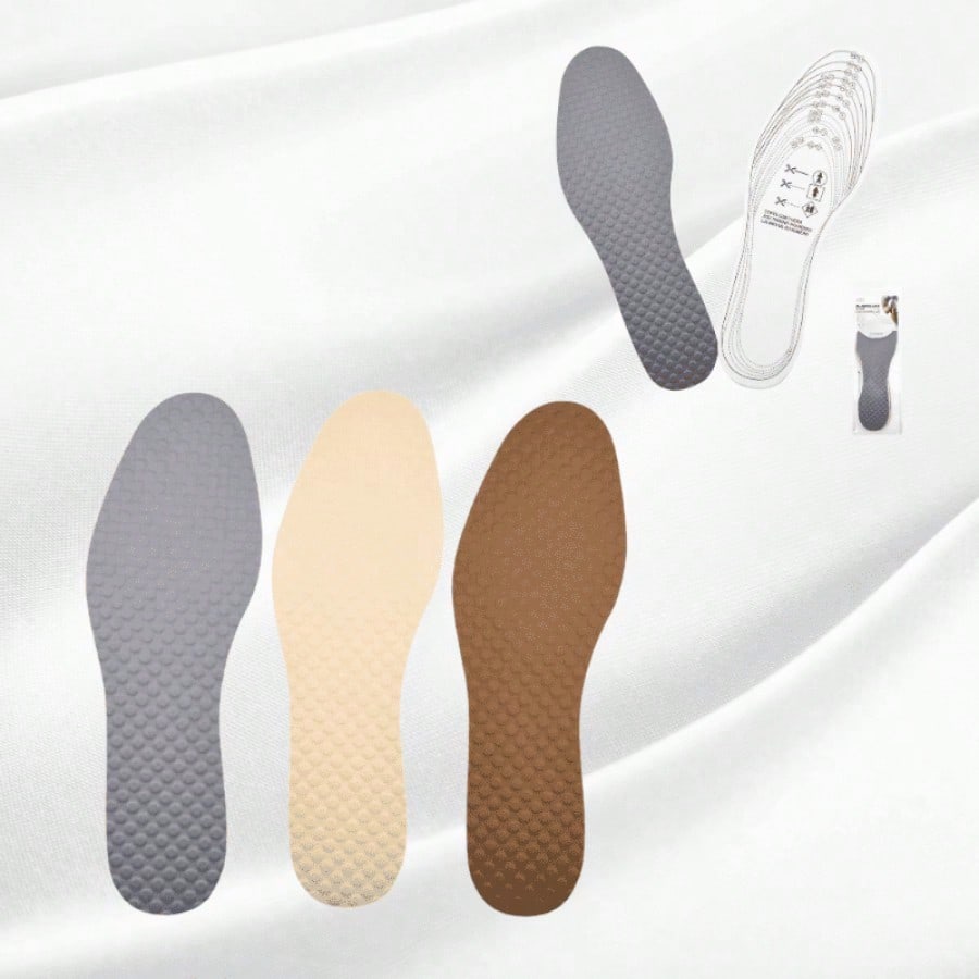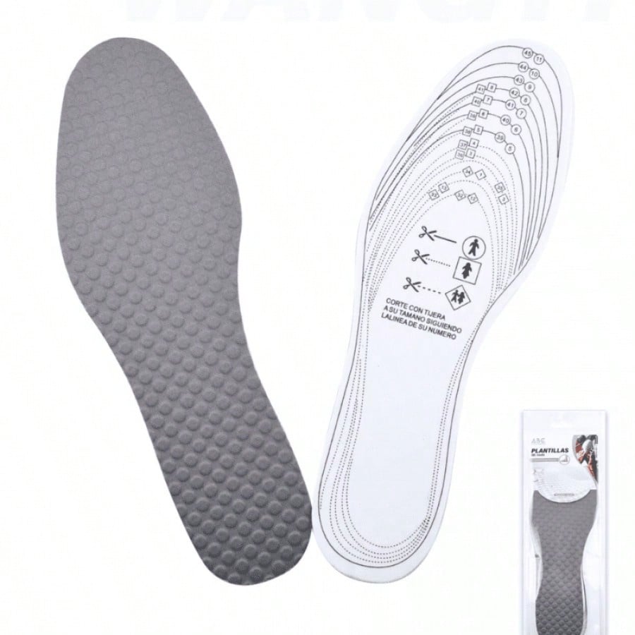 Plantillas de masaje fabricadas en EVA. Material con propiedades de amortiguación que incluye nódulos de masaje para estimular la planta del pie durante la caminata diaria.