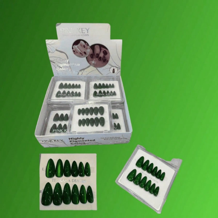 Kit para aplicación de uñas postizas. Incluye todo lo necesario para colocar uñas artificiales de forma sencilla en casa, con resultados duraderos y aspecto profesional.