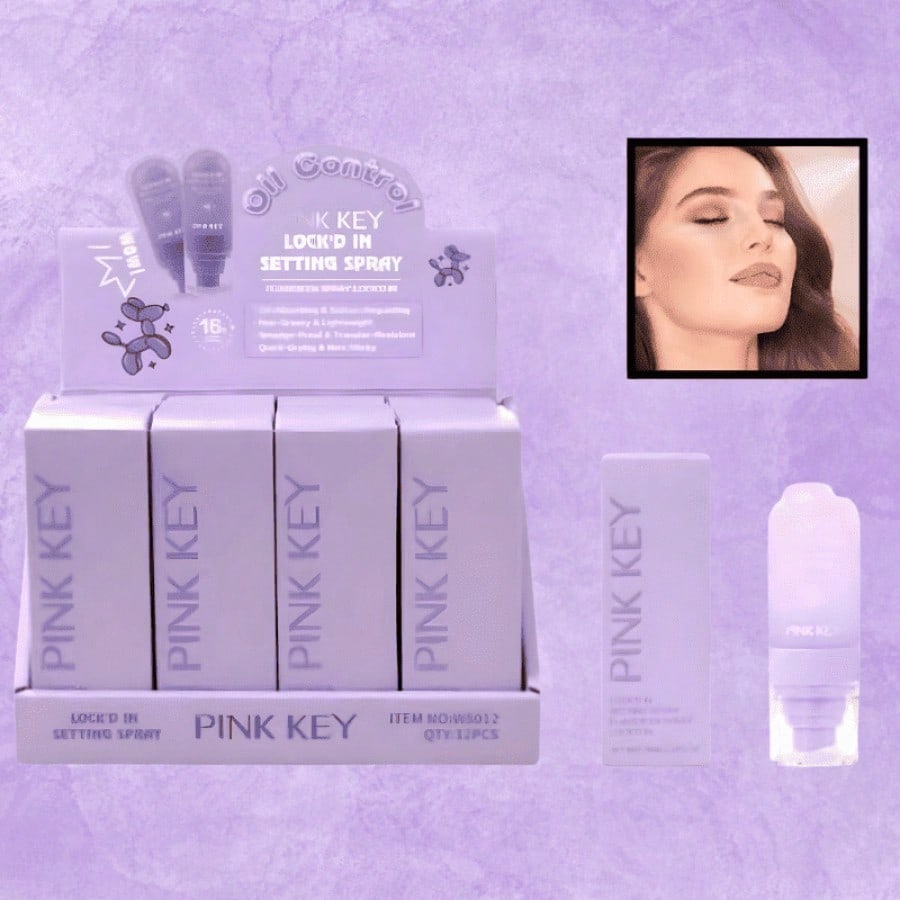 Agua fijadora de maquillaje para mayor duración. Spray o gel que sella los productos aplicados, ayudando a mantener el maquillaje intacto por más tiempo incluso en condiciones adversas.