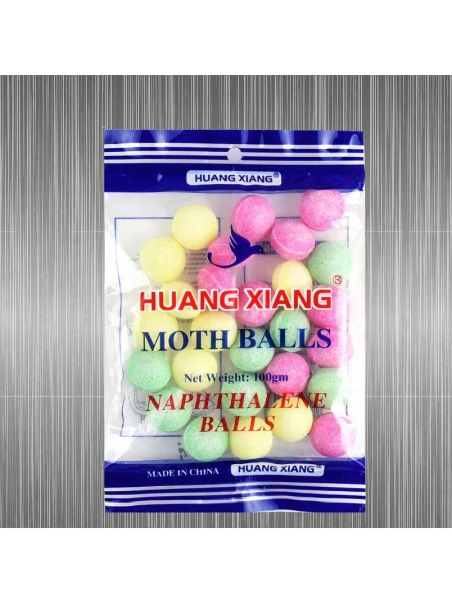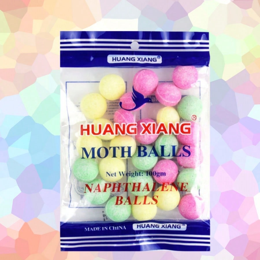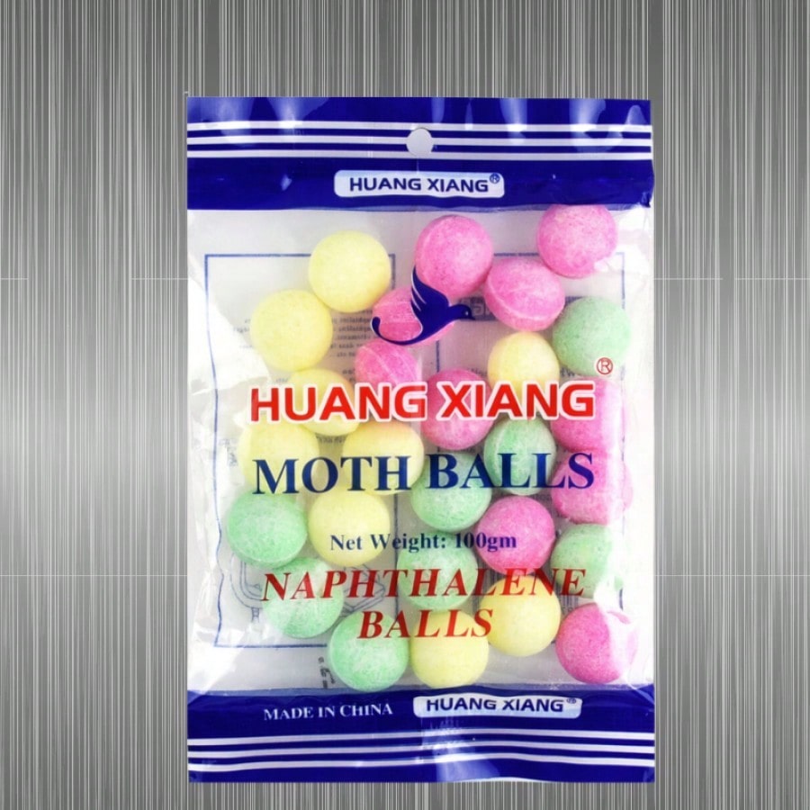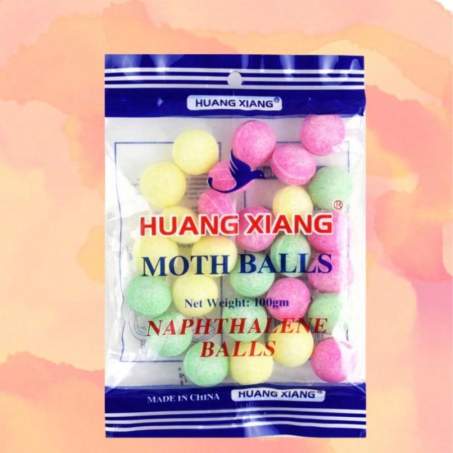 Bolas de alcanfor colores estándar de 100 gramos. Cantidad práctica para uso doméstico regular, colores que ayudan a visualizar su ubicación en armarios y cajones.