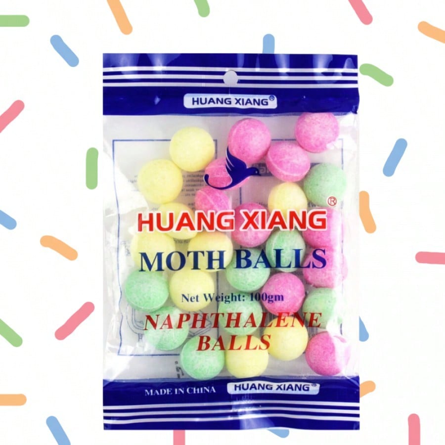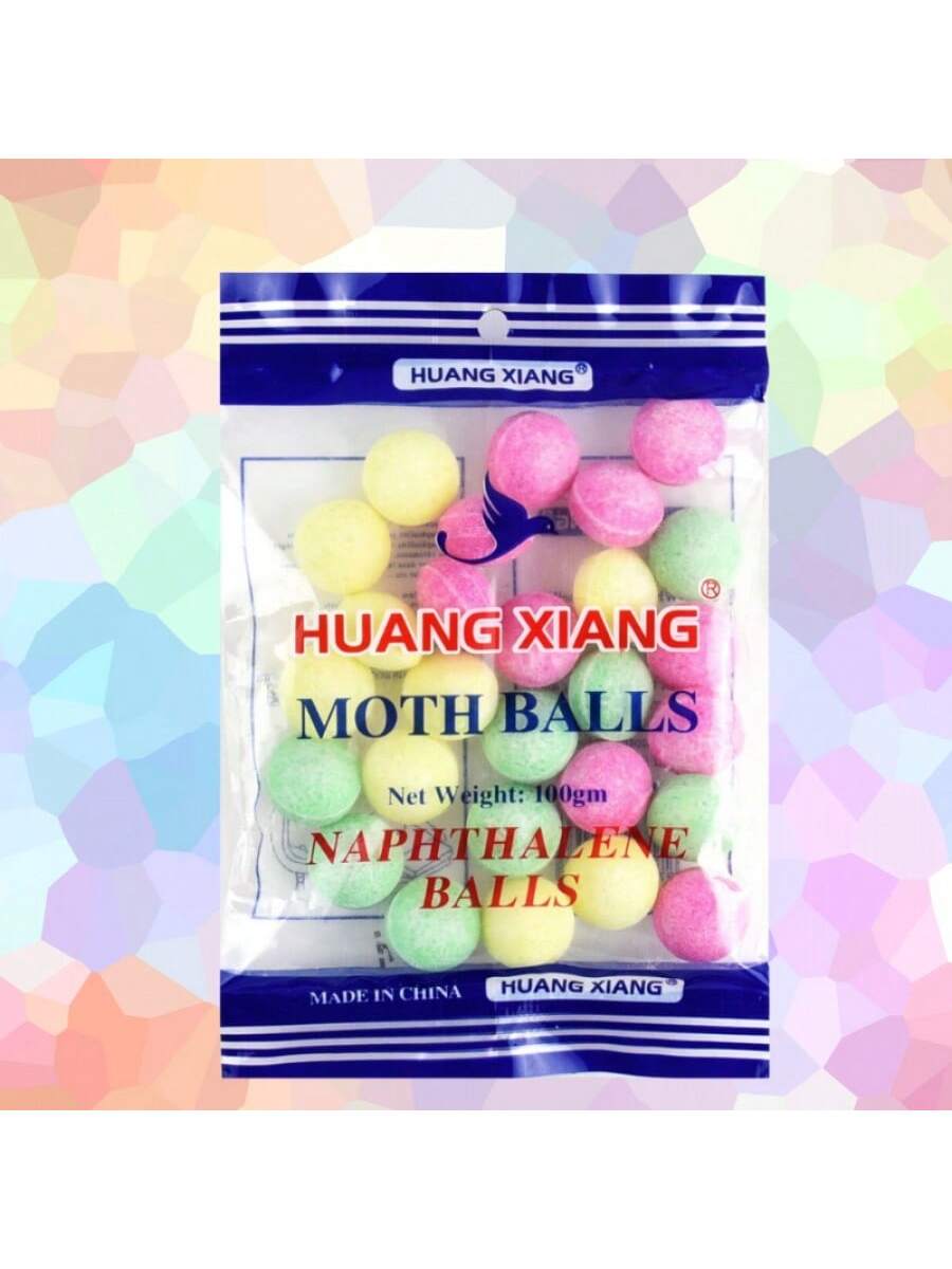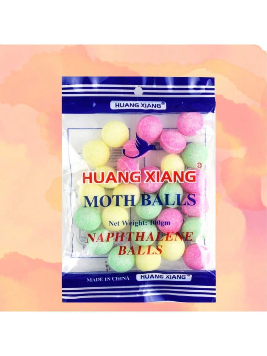 Bolas de alcanfor colores estándar de 100 gramos. Cantidad práctica para uso doméstico regular, colores que ayudan a visualizar su ubicación en armarios y cajones.