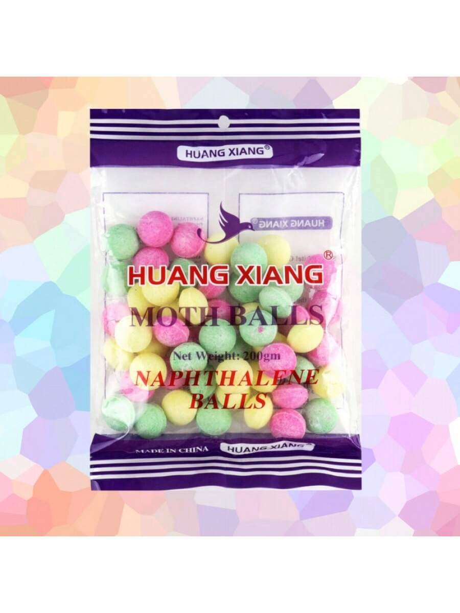Bolas de alcanfor colores estándar de 200 gramos. Calidad regular para protección básica, solución económica para el cuidado de prendas y espacios almacenados.