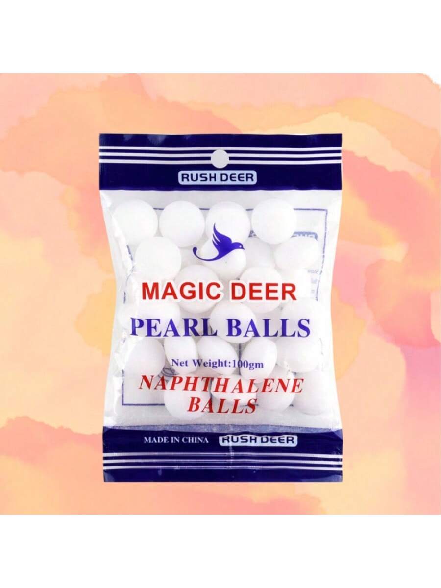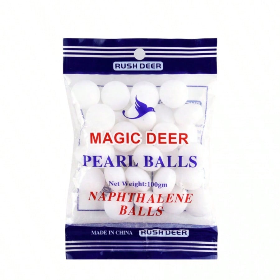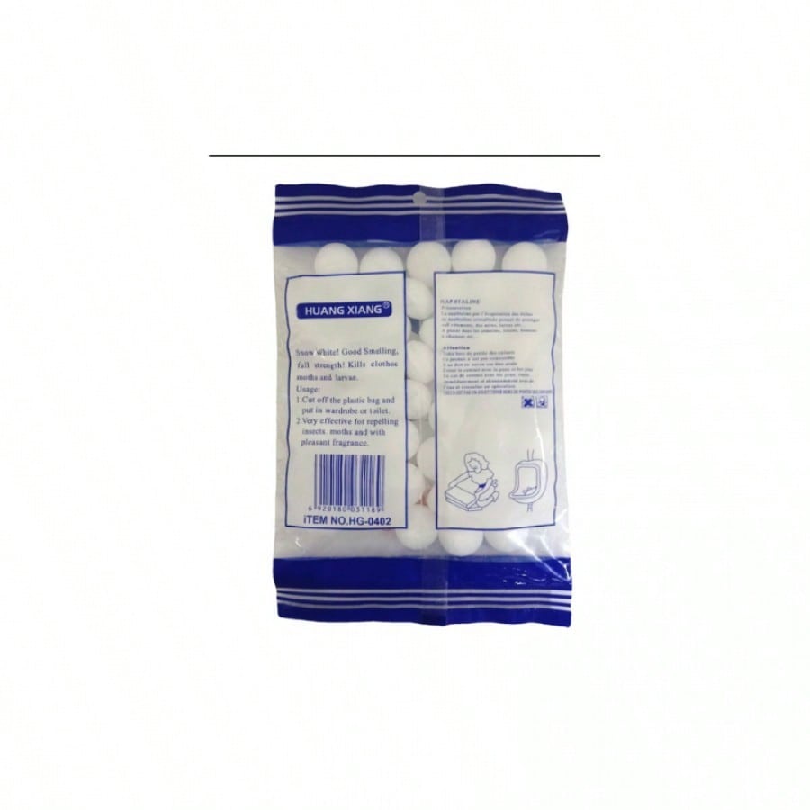 Bolas de alcanfor blanco premium de 100 gramos. Alternativa sin colorantes para quienes prefieren el producto natural, misma efectividad en protección contra insectos.