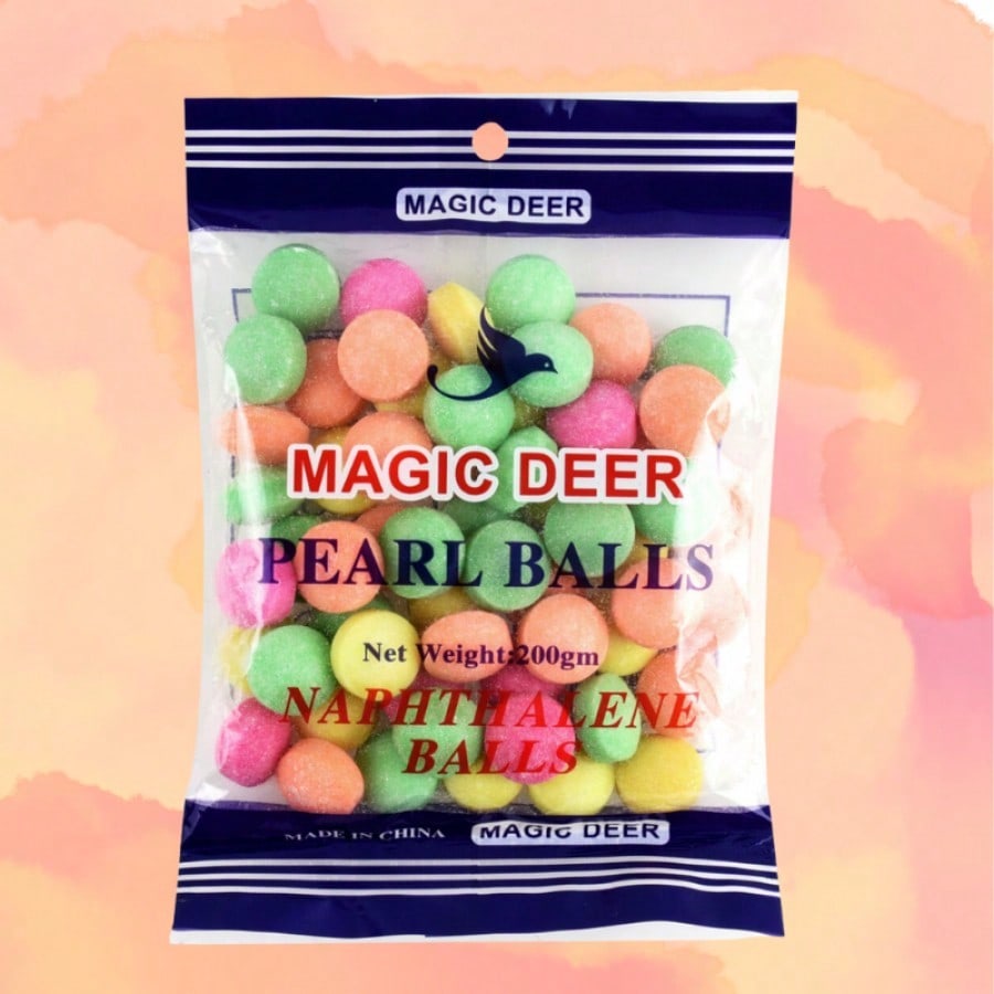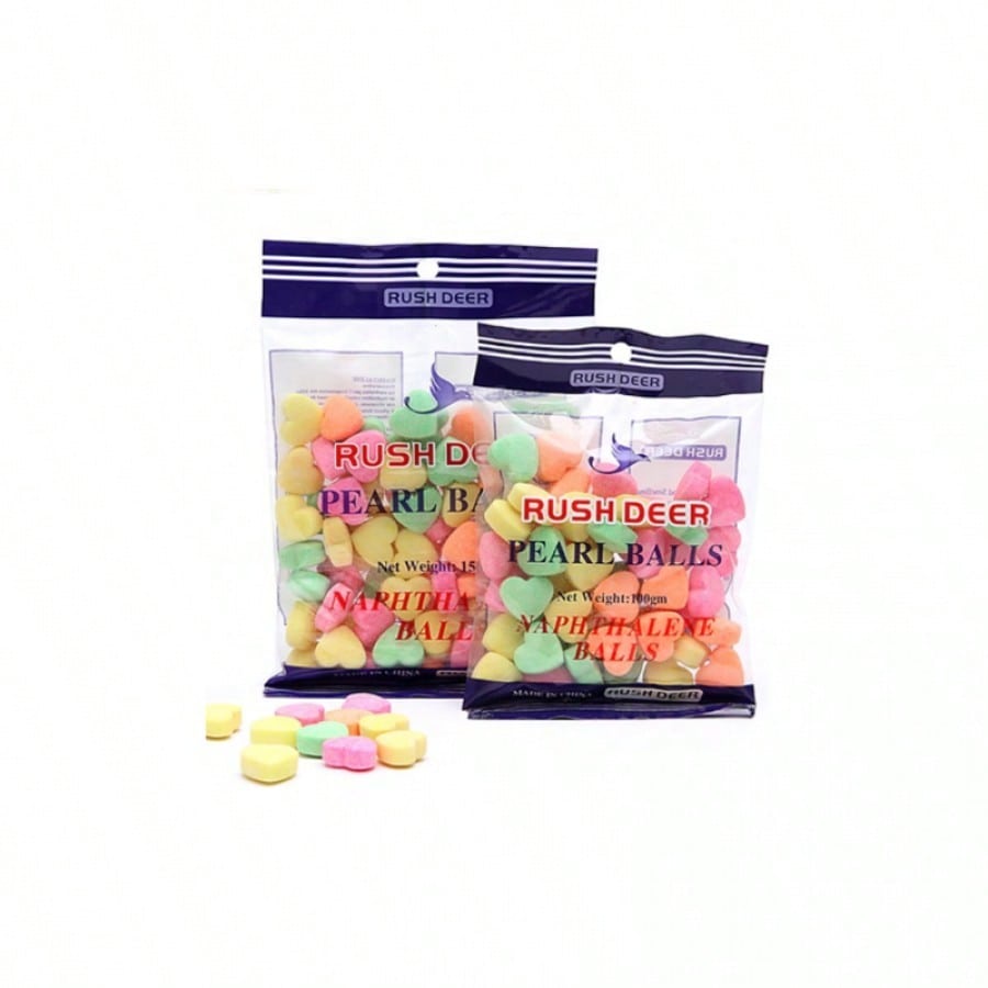 Bolas de alcanfor colores premium de 100 gramos. Versión más pequeña de la línea premium, ideal para probar el producto o usar en espacios reducidos como maletas.