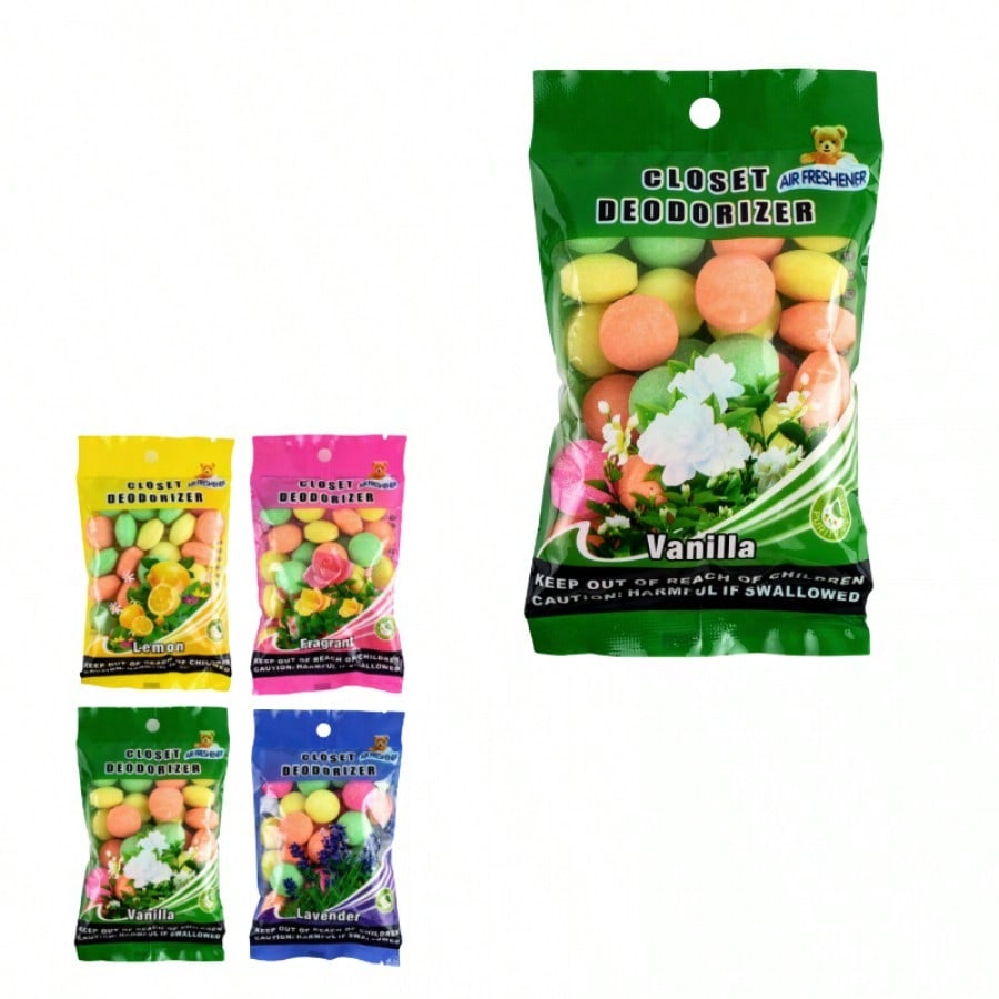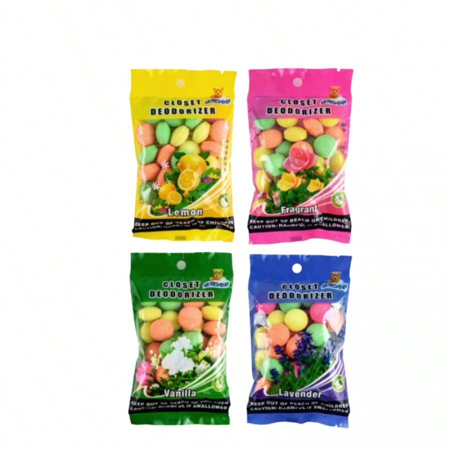 Lote de 1129 bolas de alcanfor de colores. Cantidad comercial para uso extendido, eficaces contra polillas y malos olores en armarios, cajones y espacios de almacenamiento.