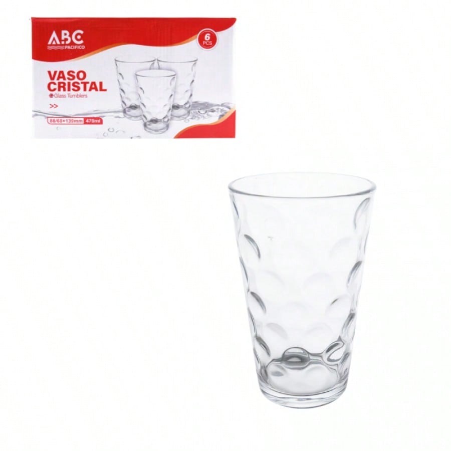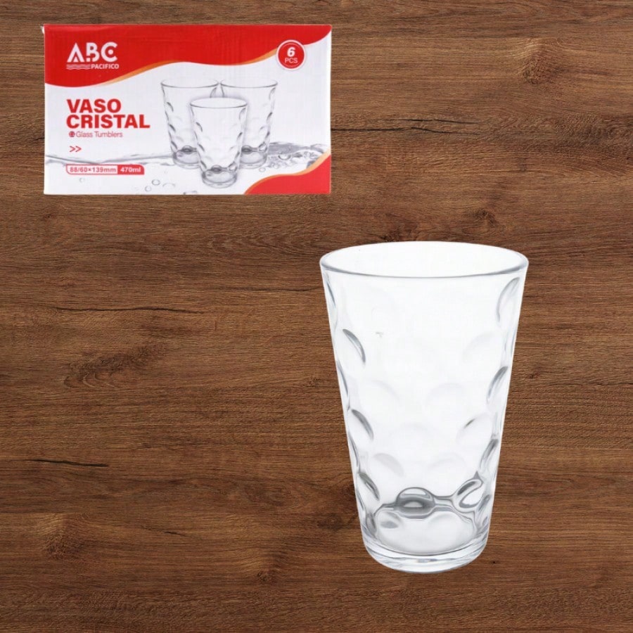 Tercer juego de vasos de 470 ml. Stock suficiente para establecimientos comerciales o familias numerosas, garantizando disponibilidad permanente para necesidades frecuentes.
