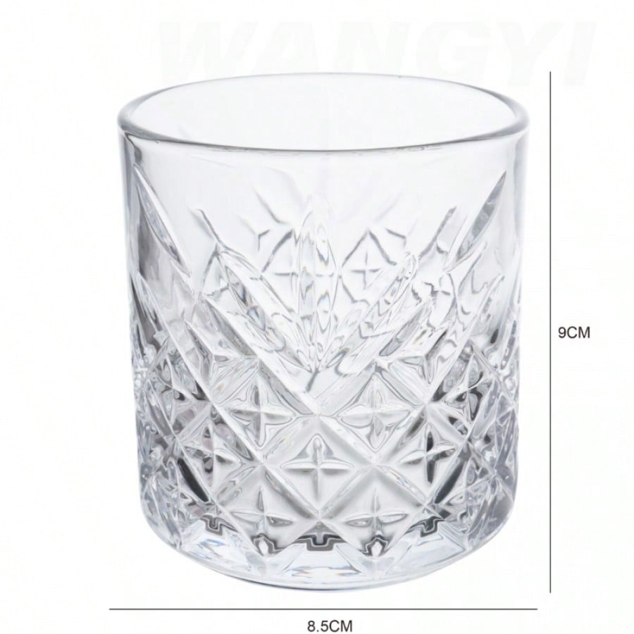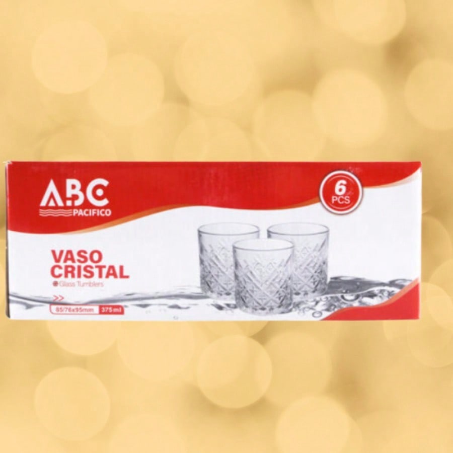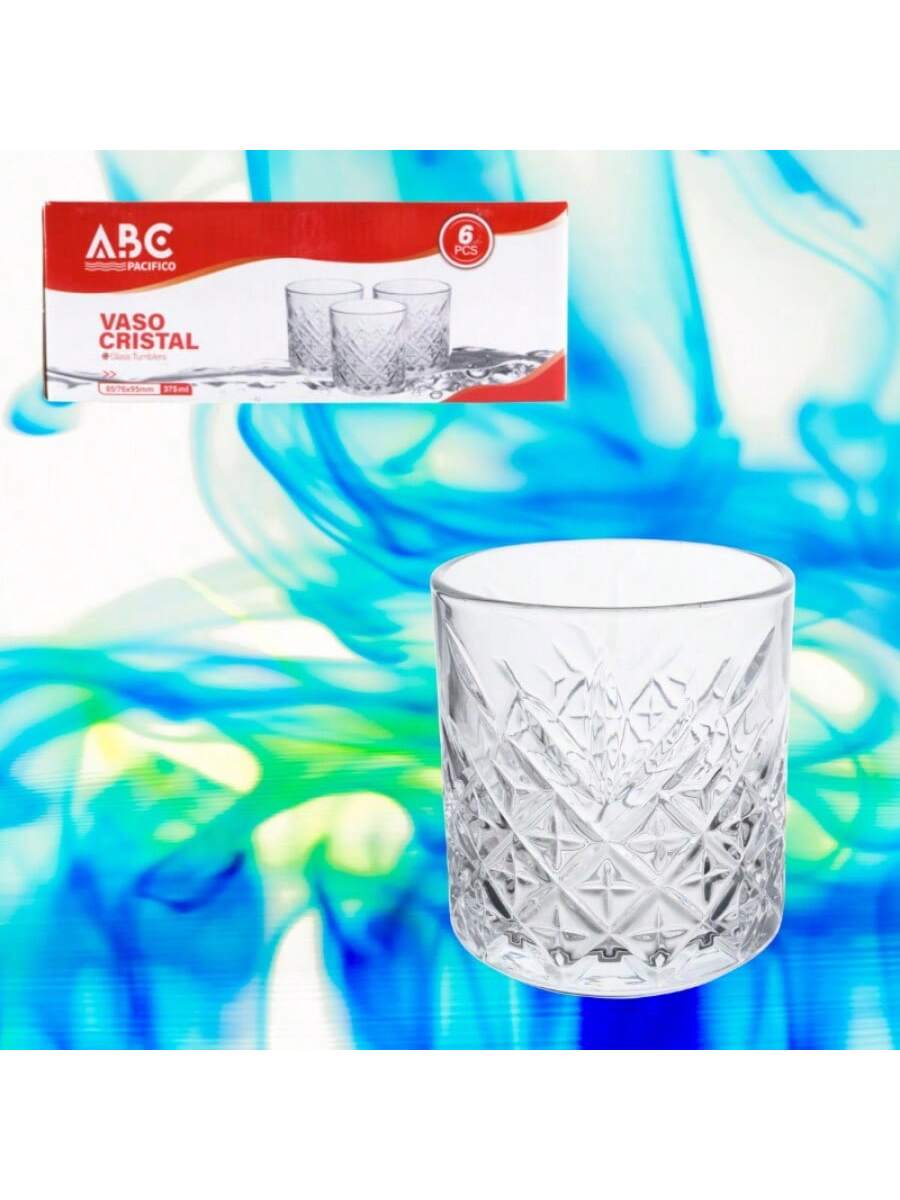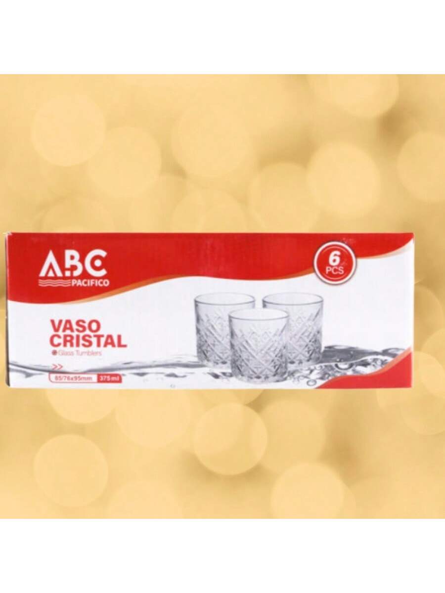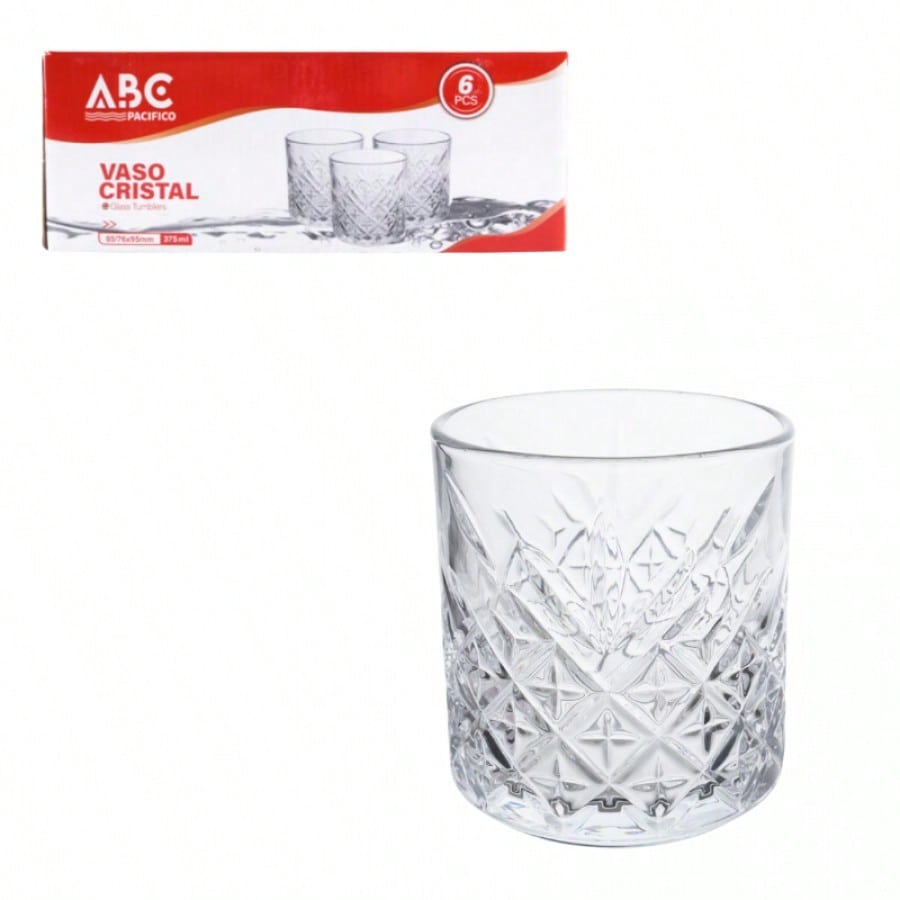 Juego de 6 vasos de vidrio de 375 ml. Volumen extra para quienes prefieren vasos grandes, forma ergonómica que facilita el agarre y previerte derrames accidentales durante el uso.