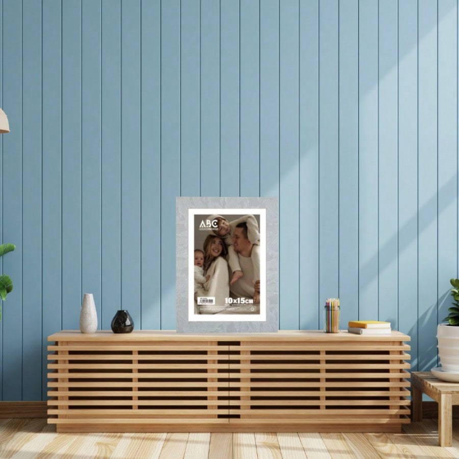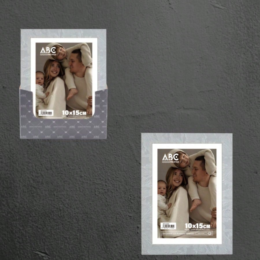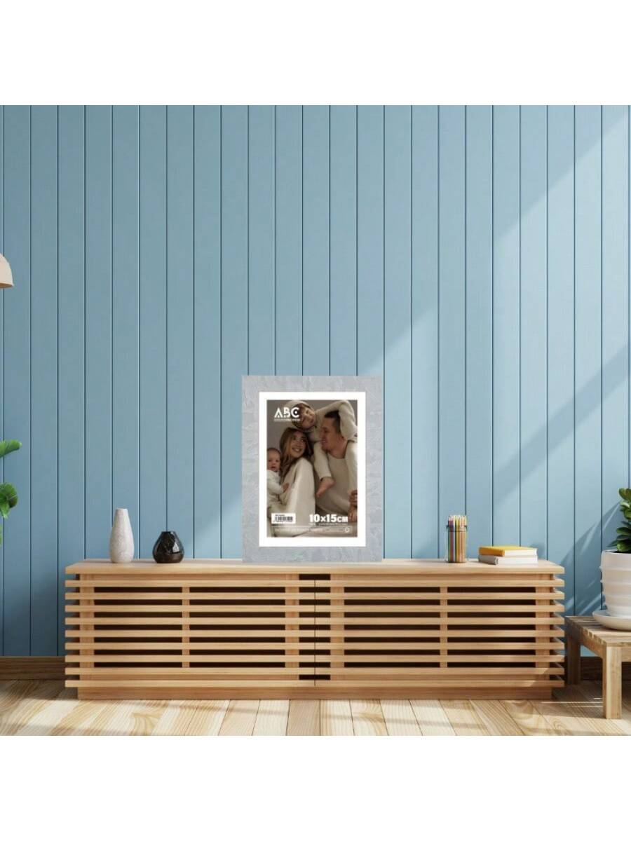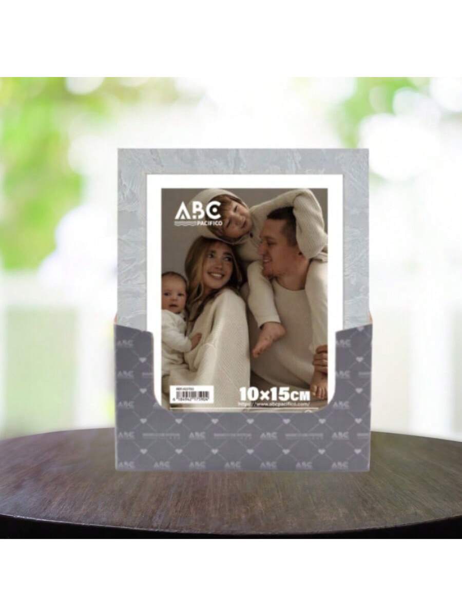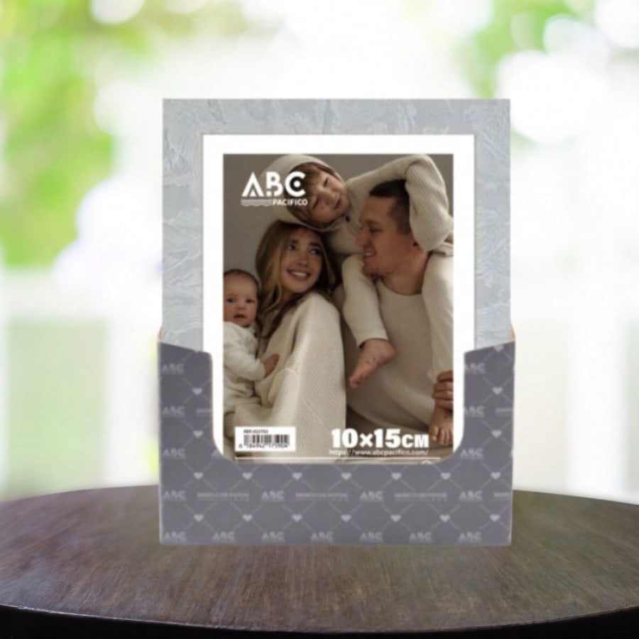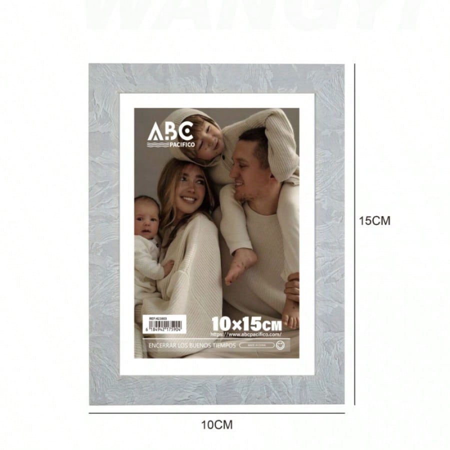 Marco de fotos modelo GH3112 en blanco y gris de 10x15 cm. Tamaño compacto perfecto para exhibir recuerdos en mesas de noche, escritorios o estanterías, con estilo actual.