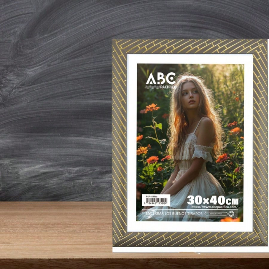Marco de fotos de alambre en tono gris dorado modelo GH6994 de 30x40 cm. Diseño moderno y minimalista que sujeta fotografías de forma elegante, ideal para decorar espacios contemporáneos.