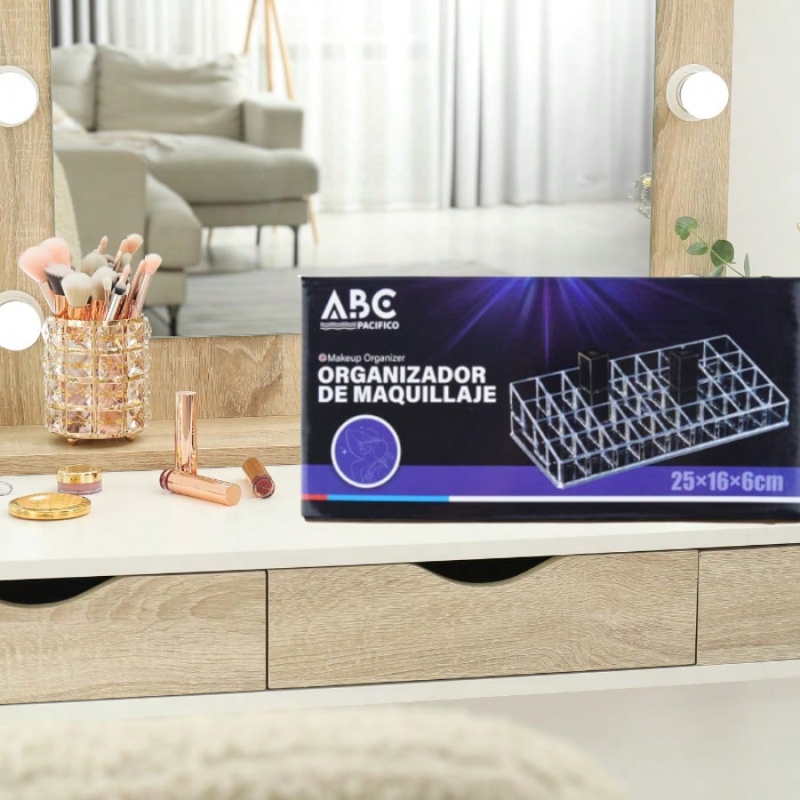 Segunda caja organizadora para artículos beauty. Mantiene el orden en tocadores y baños, fabricada en material resistente a manchas y fácil de limpiar después de uso prolongado.