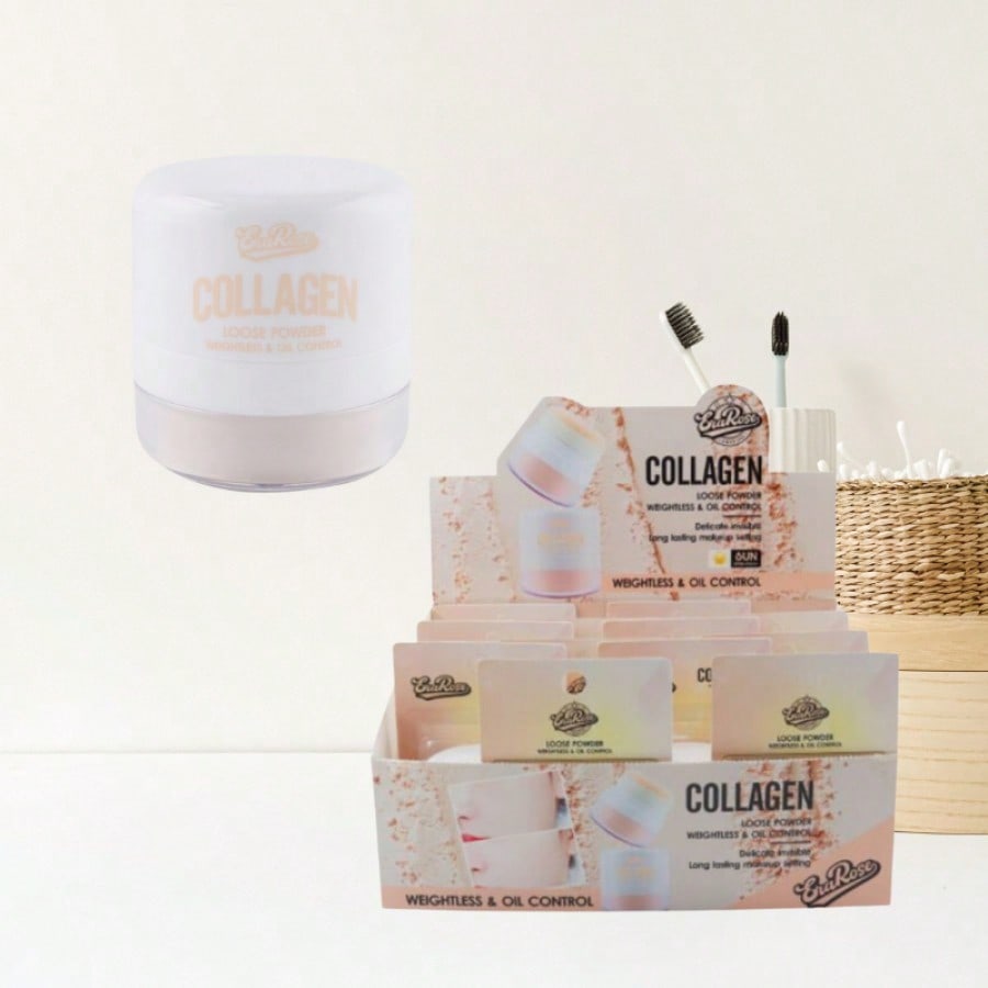 Polvo facial ligero con colágeno para control de grasa. Ayuda a minimizar brillos y poros visibles, proporcionando finish mate natural mientras cuida la piel con colágeno.
