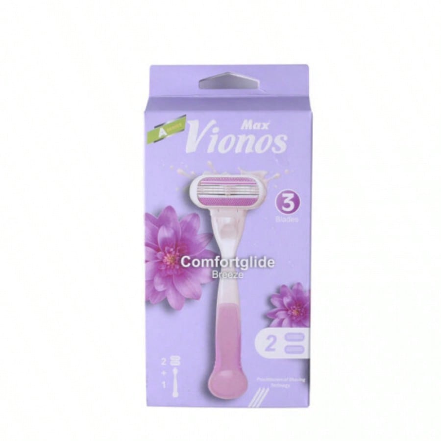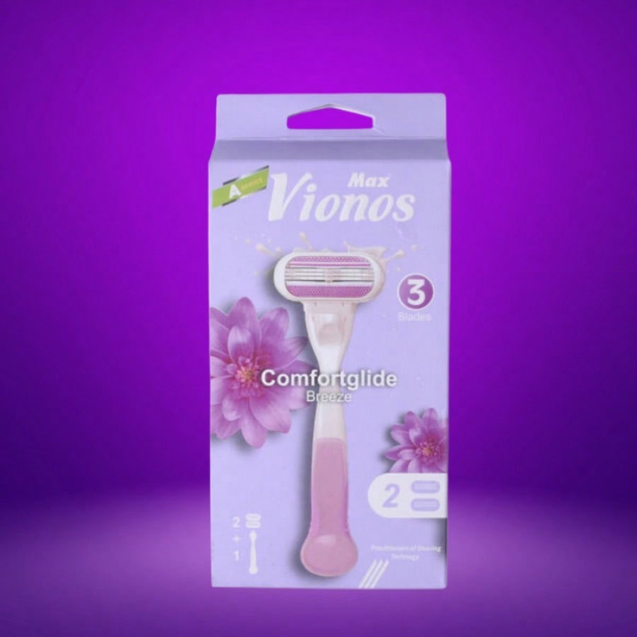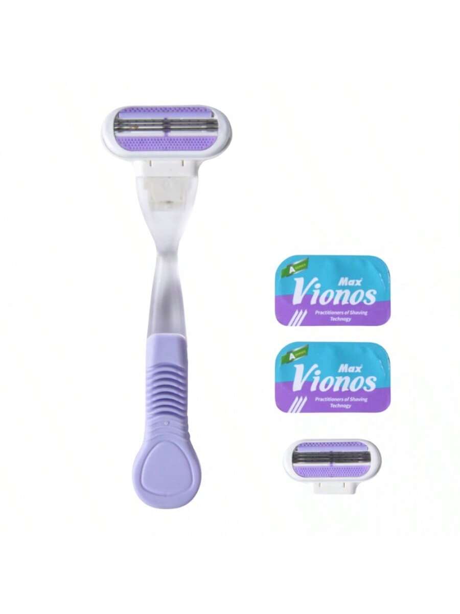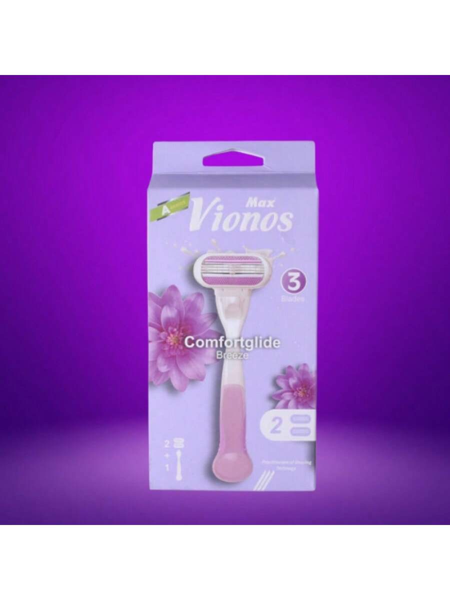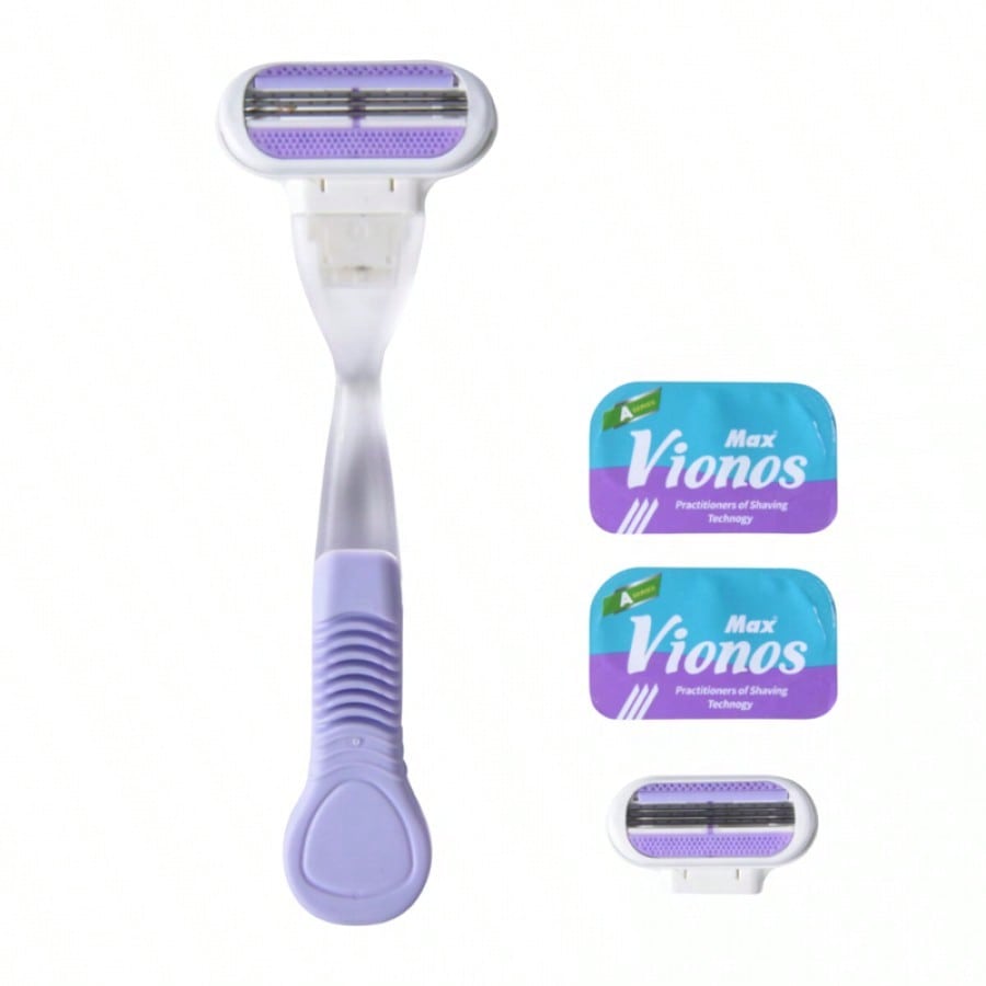 Kit Venus 1+2 que incluye mango y dos cabezales. Sistema completo de afeitado femenino, diseño ergonómico para áreas sensibles, garantizando suavidad y comodidad durante el uso.