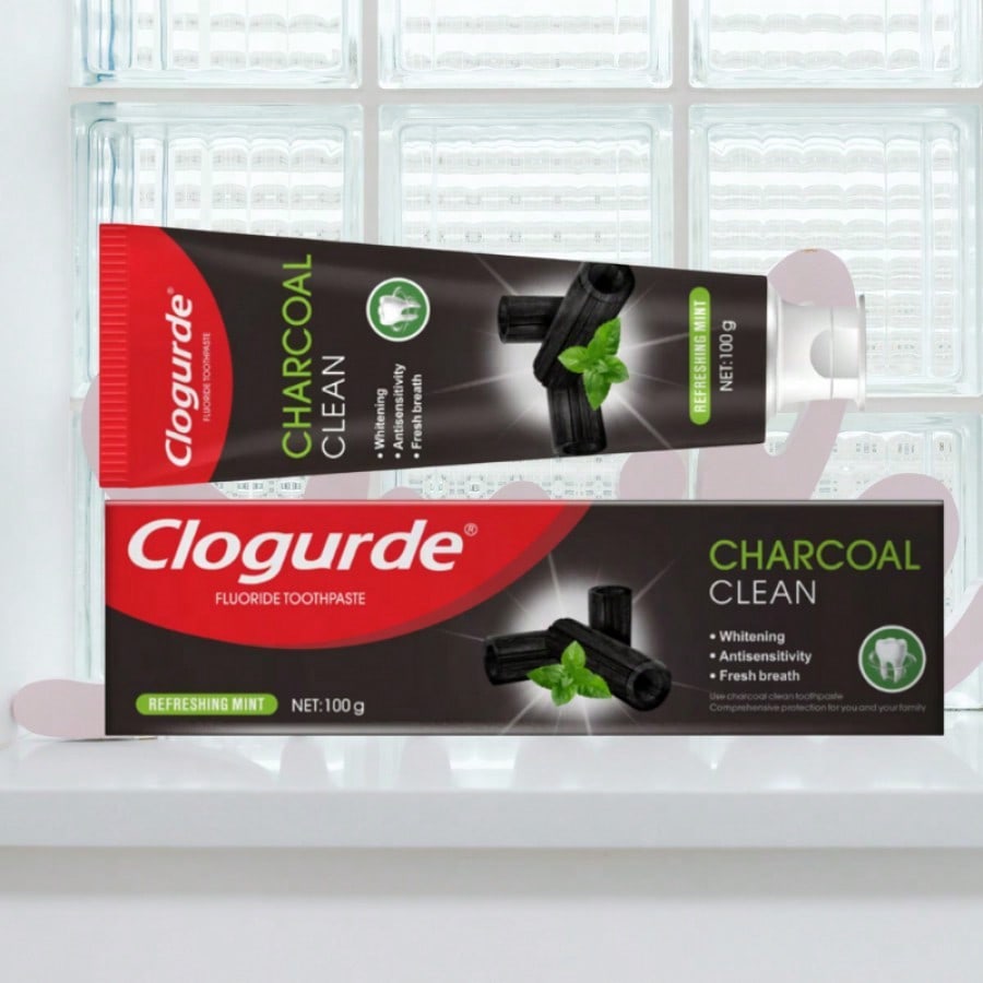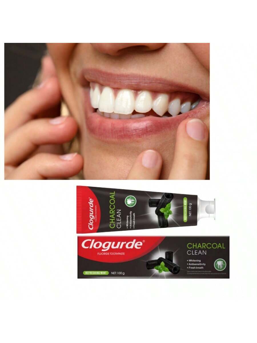 Pasta dental Clogurde blanqueadora con carbón para dientes sensibles modelo 3009-2. Efecto blanqueador suave que no irrita, ideal para quienes buscan blancura sin sensibilidad.