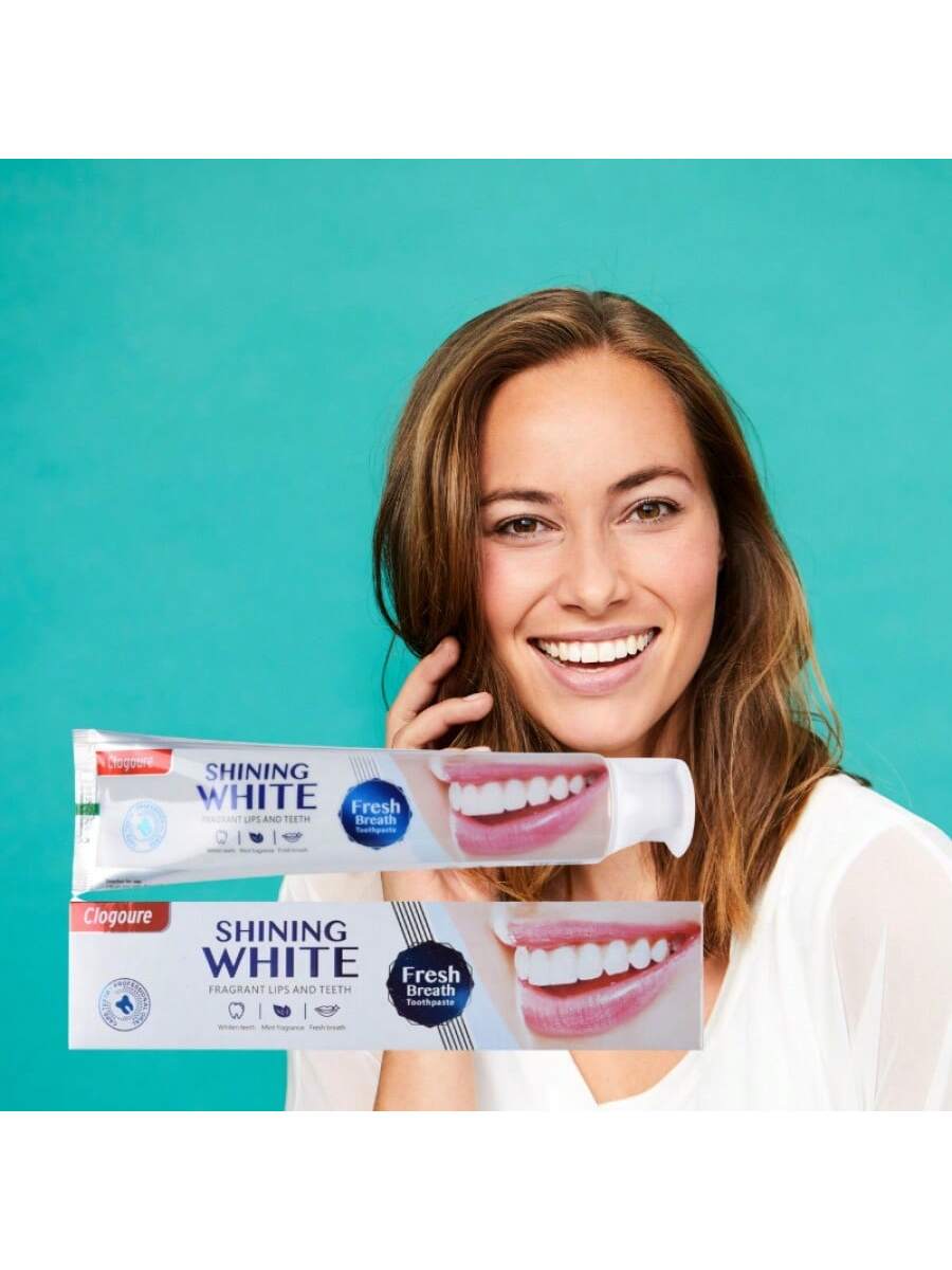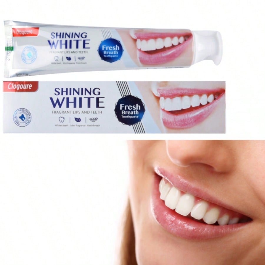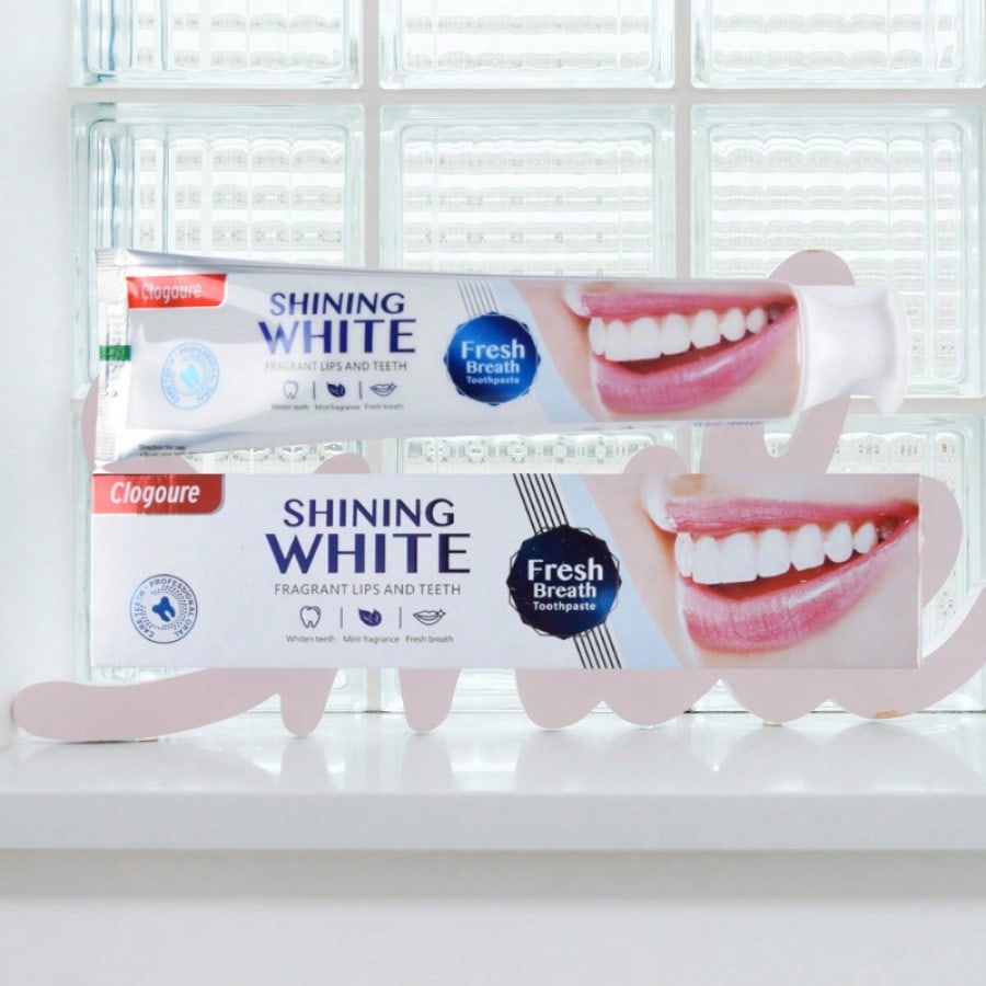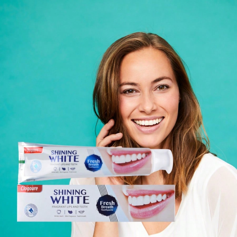 Versión Clogoure con fondo blanco y cara sonriente. Alternativa clara del mismo producto, manteniendo la efectividad en cuidado labial con presentación visualmente atractiva.
