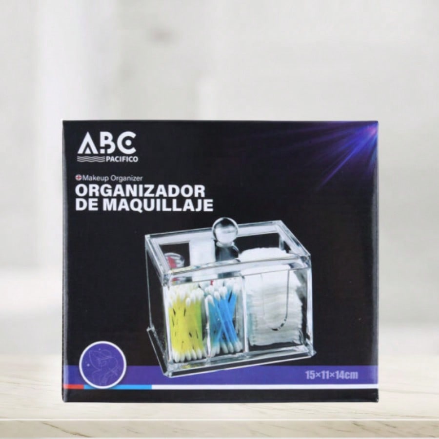 Caja de almacenamiento para organizar productos cosméticos. Diseño funcional con divisores, mantiene maquillaje y skincare ordenado, fácil acceso y protección contra polvo.
