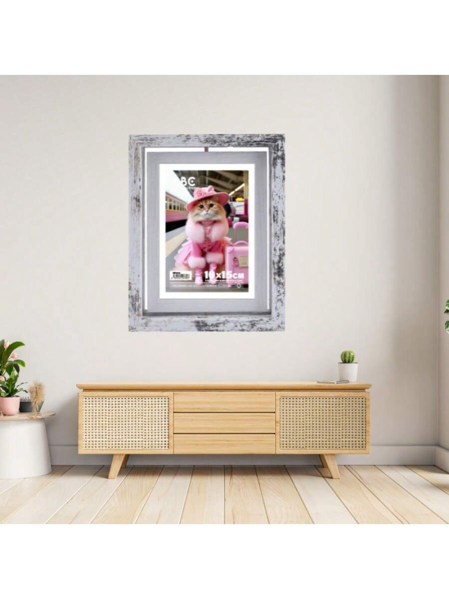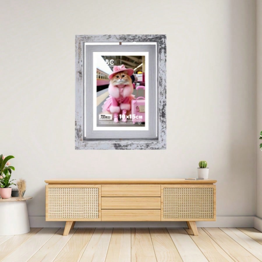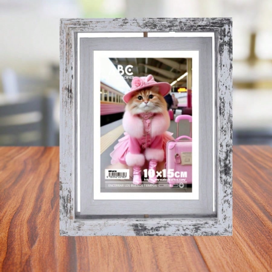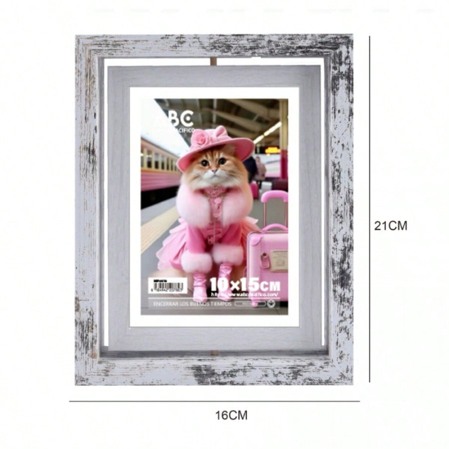 Este marco individual de estilo retro es ideal para darle un aire vintage a tu decoración. Su sencillo mecanismo giratorio te brinda la posibilidad de renovar tu espacio con un simple gesto. El color blanco lo hace fácil de combinar con cualquier estilo existente.
