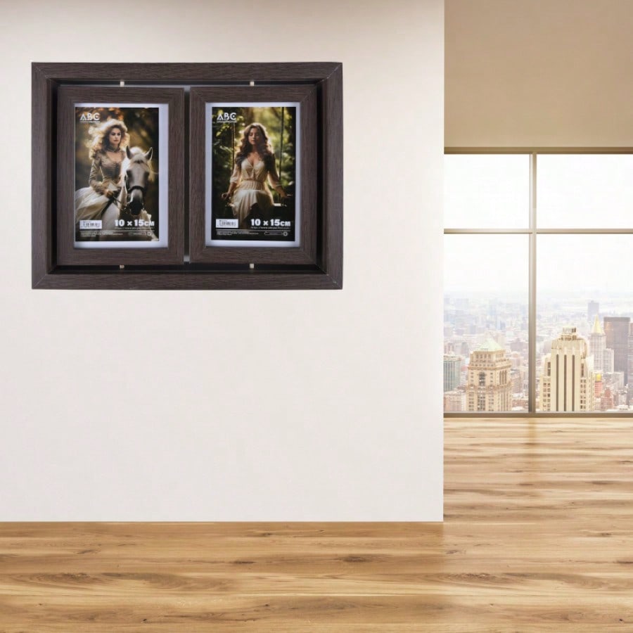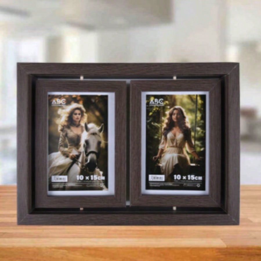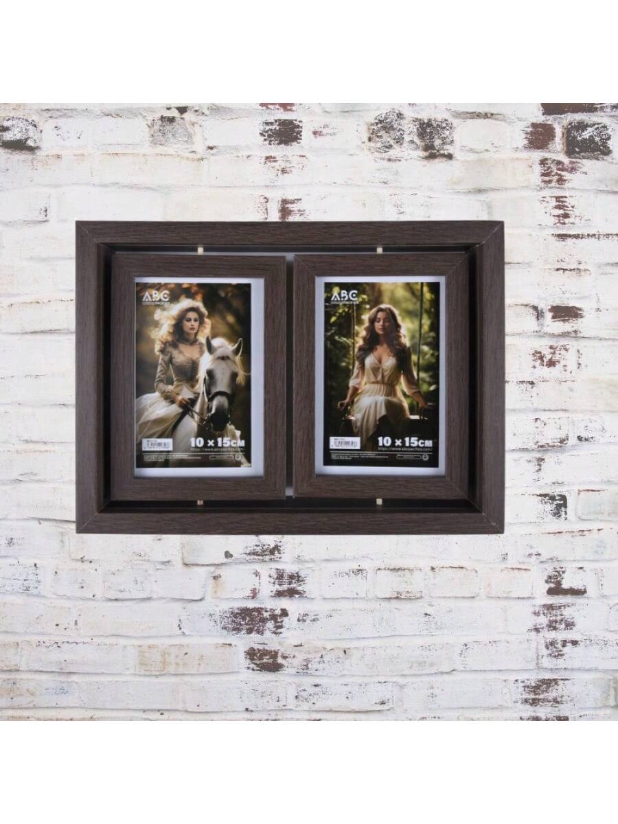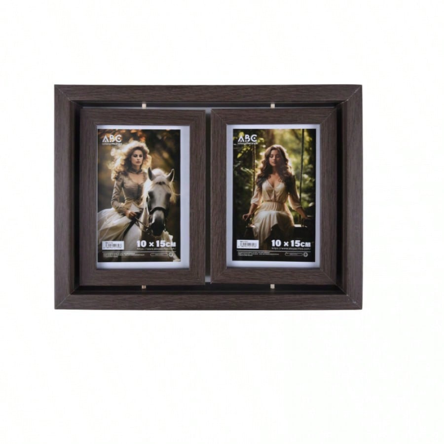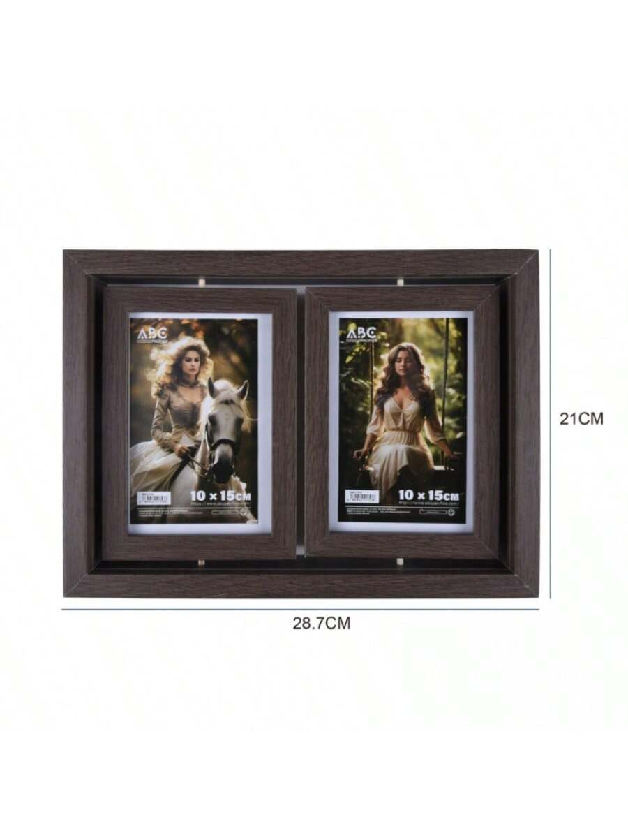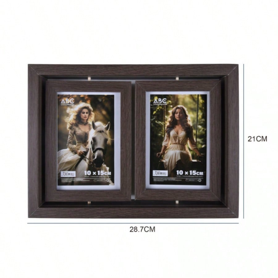 Aporta un toque de calidez y elegancia a tu espacio con este marco giratorio en tono marrón. Su diseño de doble cara te permite mostrar dos fotografías diferentes, ideal para tener siempre a la vista a tus seres queridos. Un detalle decorativo con mucha utilidad.
