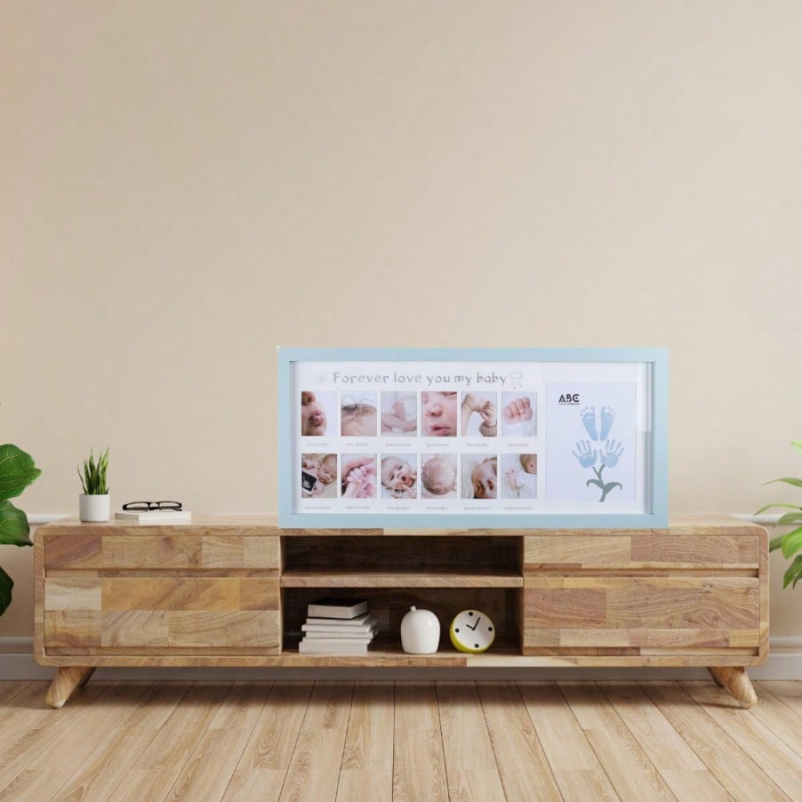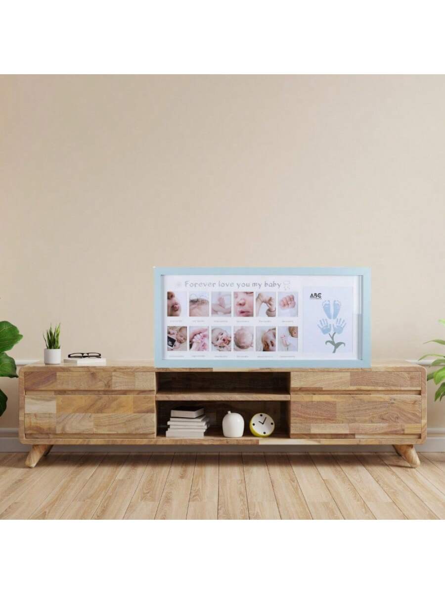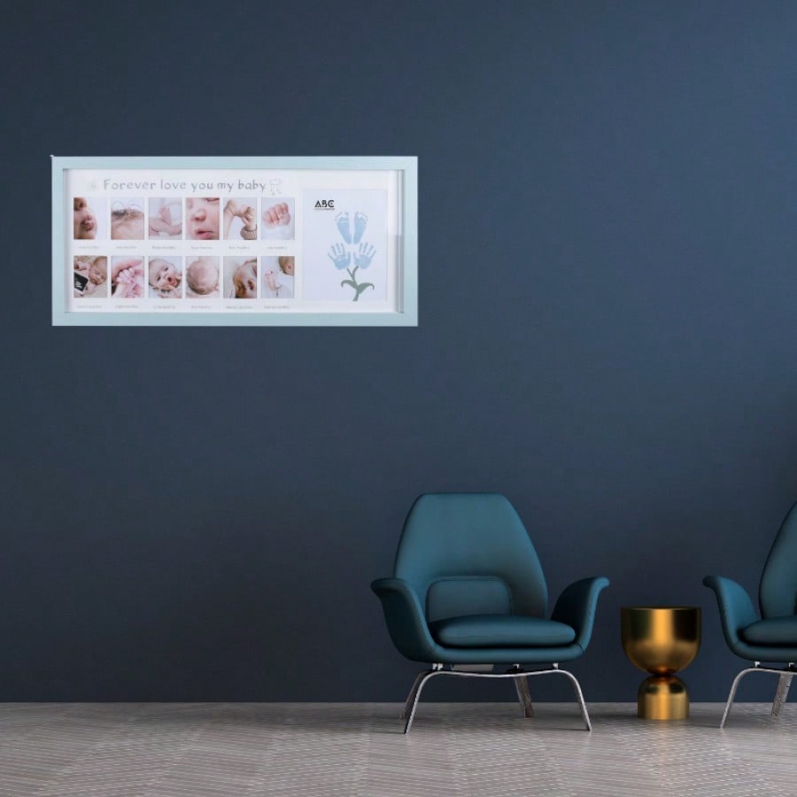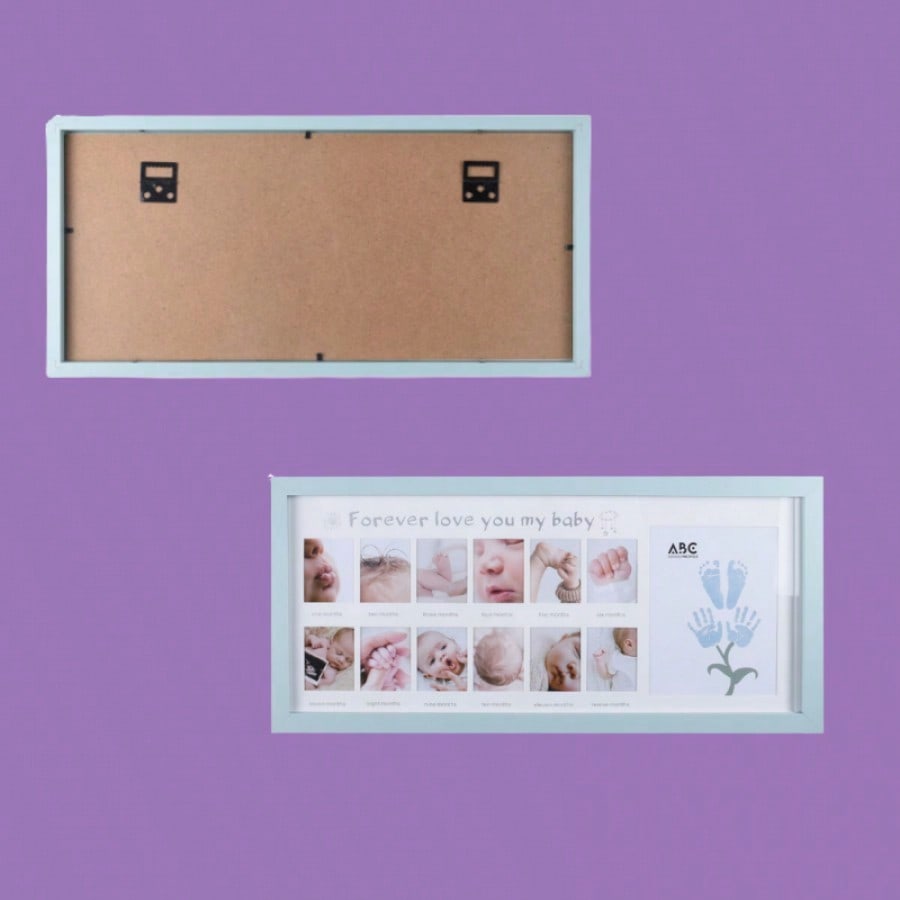Celebra los primeros pasos con este único marco con forma de huella. Incluye un diseño con múltiples aberturas para crear un collage de recuerdos inolvidables. El color azul y su forma distintiva lo convierten en un regalo perfecto para guardar los momentos más especiales.