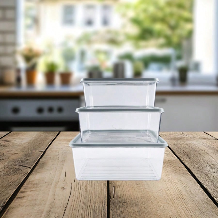 Organiza tu cocina y despensa con este práctico juego de recipientes. Ideales para guardar sobras, alimentos secos o preparar comidas para llevar. Fabricados con materiales aptos para alimentación, ayudan a mantener la frescura y el orden de una forma sencilla.