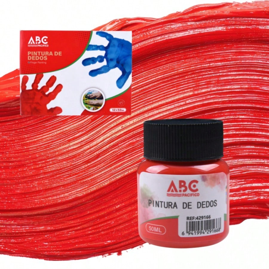 Pintura de dedos roja de 50ml, color vibrante y fácil de aplicar, segura sin veneno y lavable, suave para creatividad infantil.