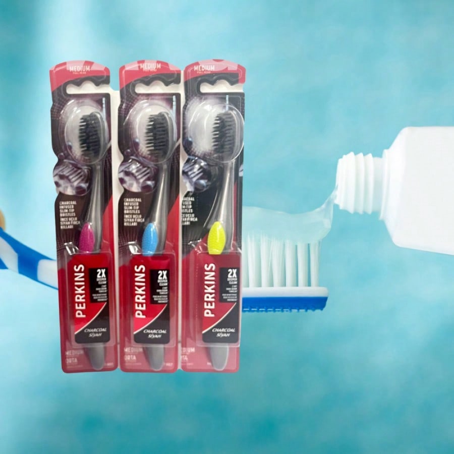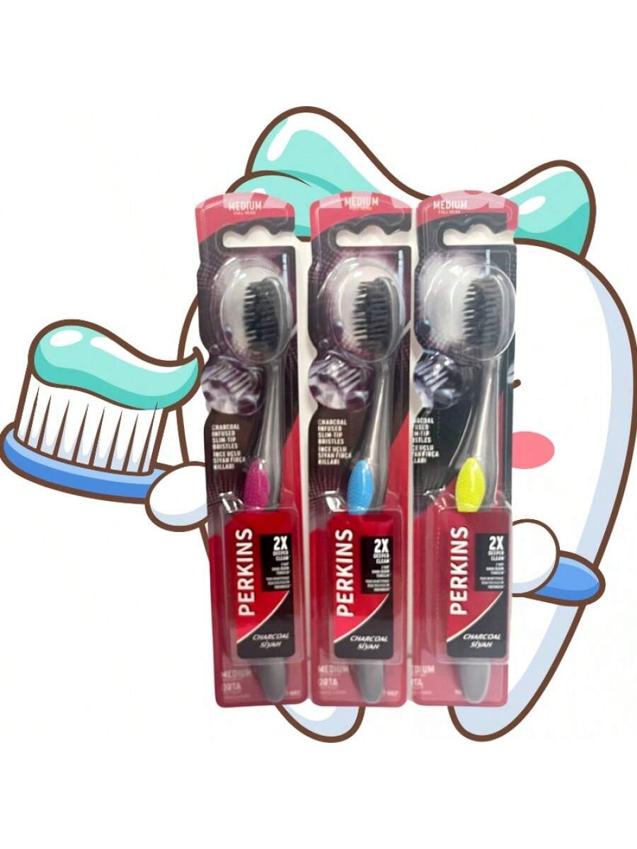 Cepillo de dientes con cerdas suaves, limpia suavemente sin dañar encías, cabezal adecuado y cómodo de agarrar.