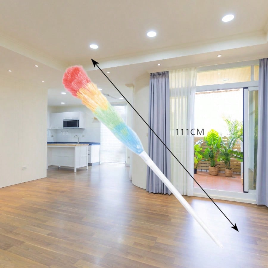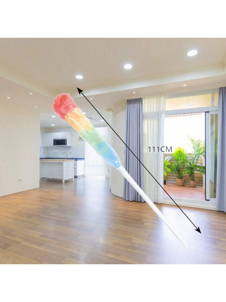 Plumero telescópico colorido de 50g, mango extensible y cerdas suaves sin rayar. Adsorbe polvo y cabello fácilmente, ideal para hogar y coche, práctico y con diseño atractivo.