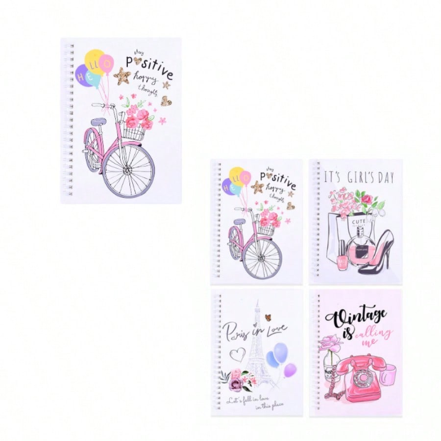 Cuaderno de espiral A5 (14,5×21CM), tapa de cartulina blanca, resistente y desgastable. Espiral metálico, se abre de 360°, fácil de escribir. Hojas internas suaves, ideal para notas, dibujos y planners, portátil, apto para estudio y trabajo.