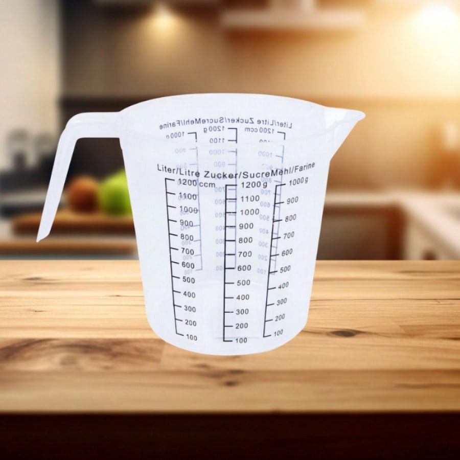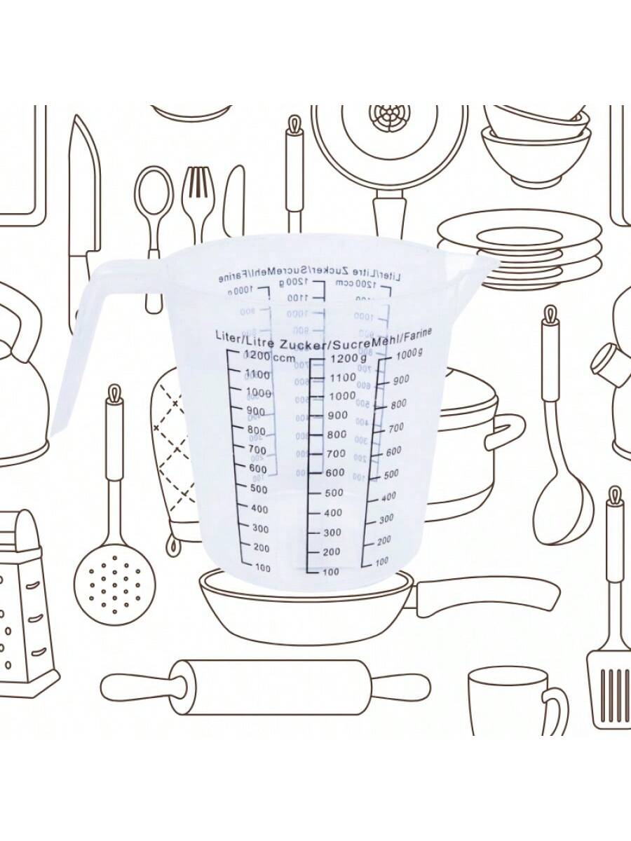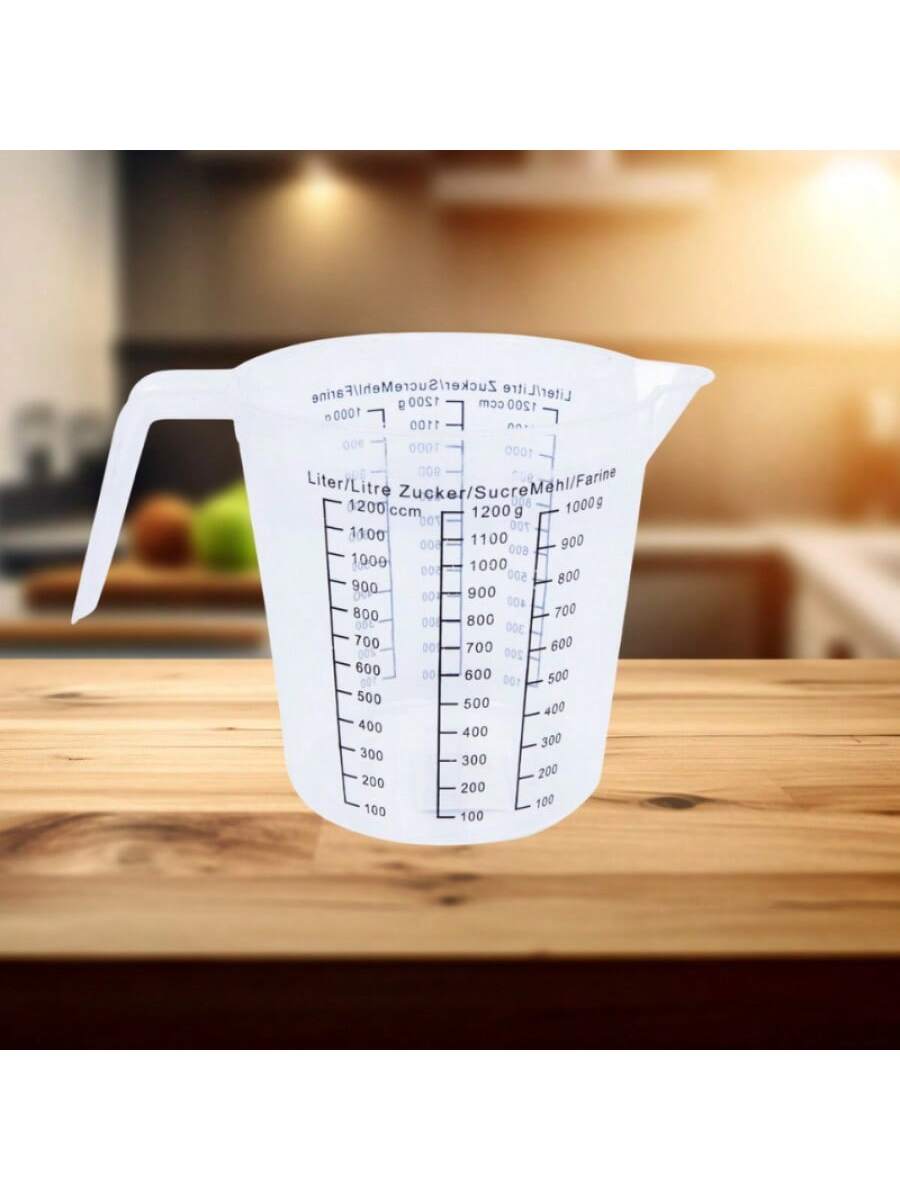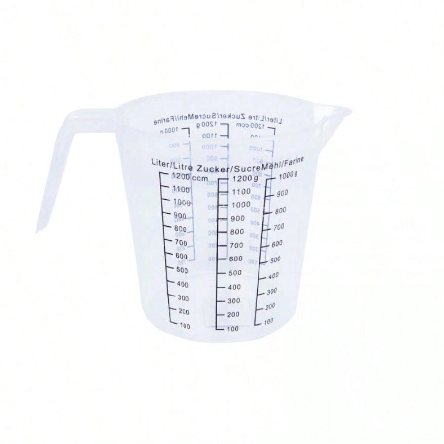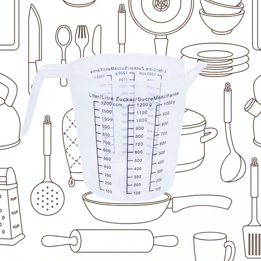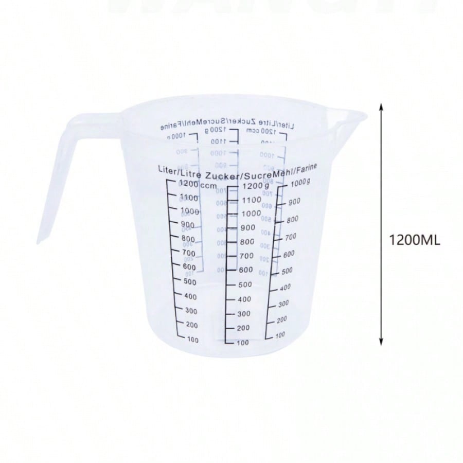Vaso medidor de 1200 mL, material transparente, graduación clara, gran capacidad, anti - fugas, ideal para cocinar y hornear.
