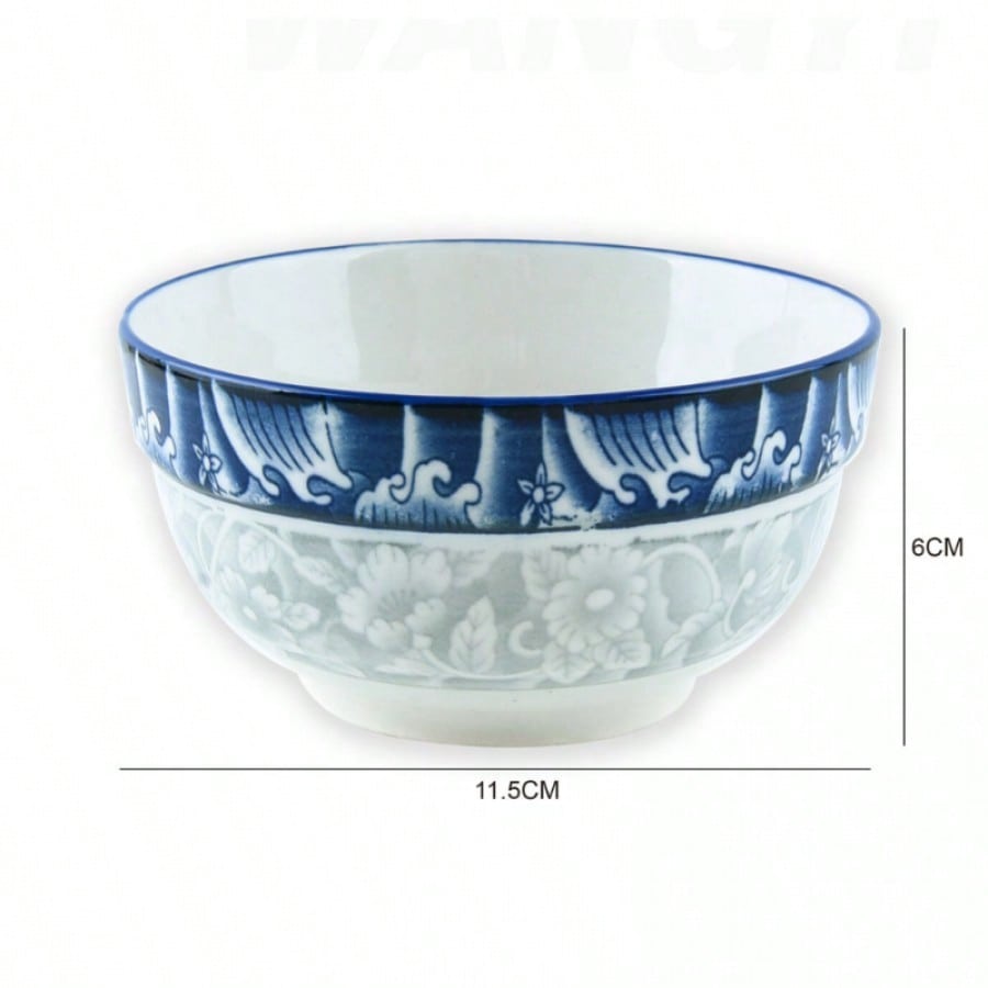 Cubeta de cerámica de 4.5 pulgadas (aproximadamente 11.5cm de diámetro), borde reforzado anti - choque, material de grado alimentario, sin plomo ni cadmio, resistente al microondas y lavavajillas. Ideal para comida casera y restaurantes.