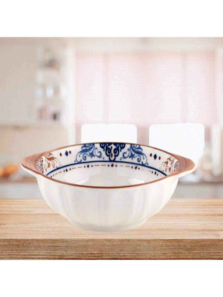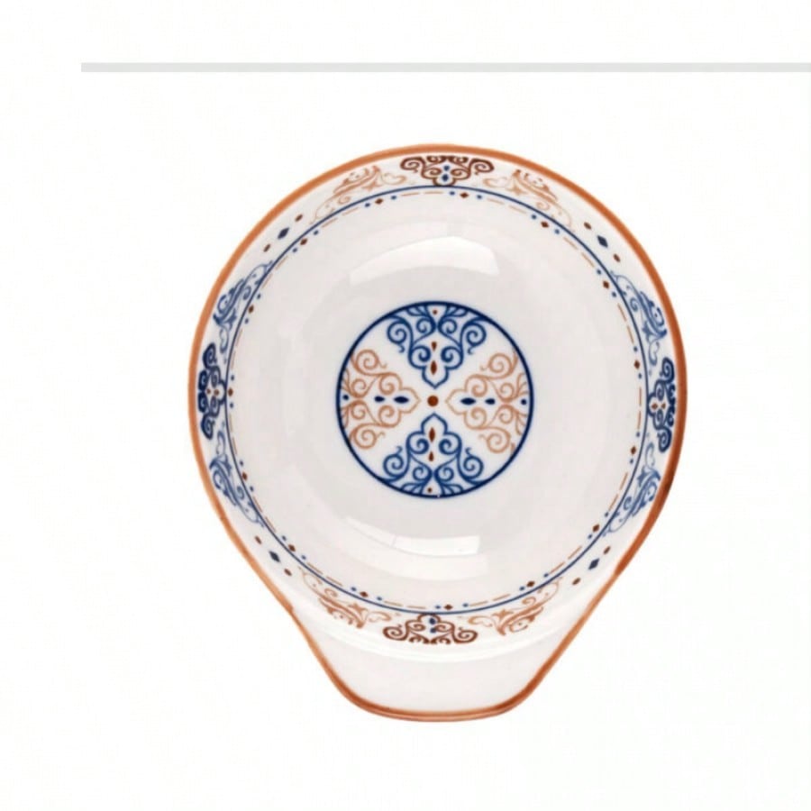 Plato de 5 pulgadas con patrón de piedra y forma de "ruyi", elegante textura, bordes decorativos y diseño floral delicado, apto para microondas y lavavajillas, combinando belleza y utilidad.